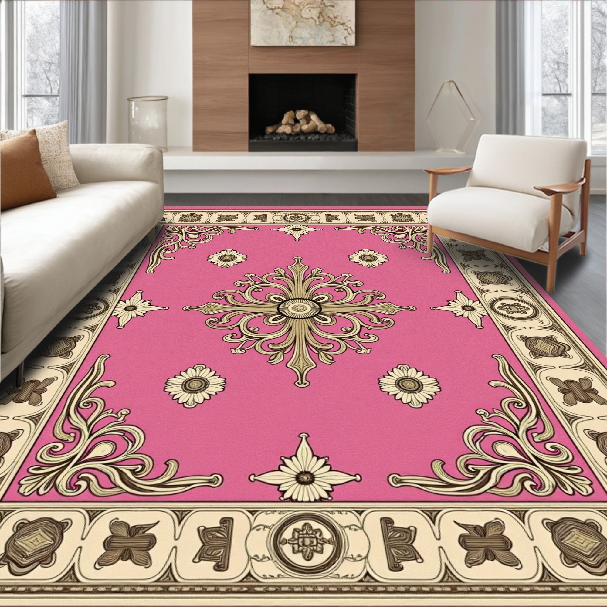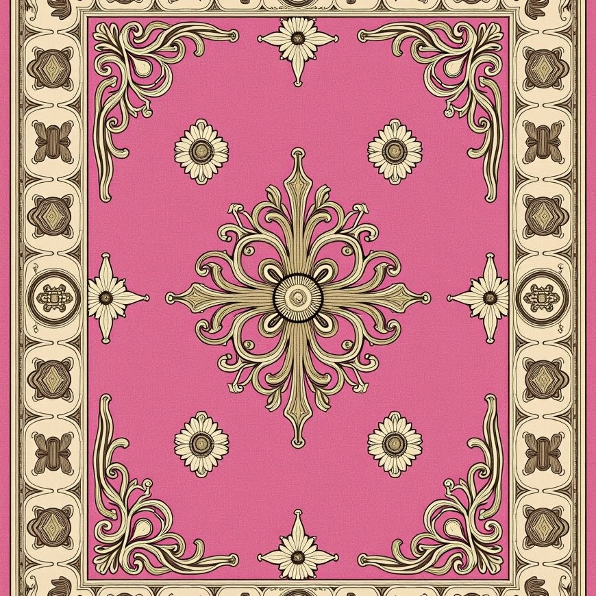 Distressed Ornate Arabesque Trellis Accent(Pink)