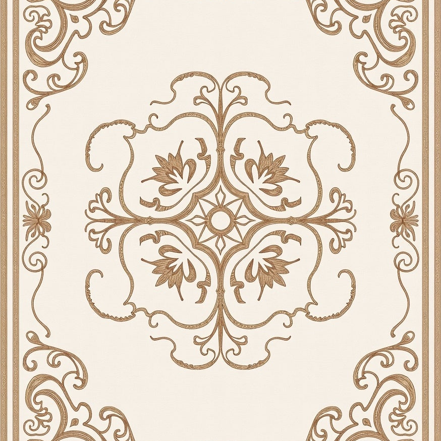 Classical Arabesque Damask Elegant Scroll Motif Artisan Design(Beige)