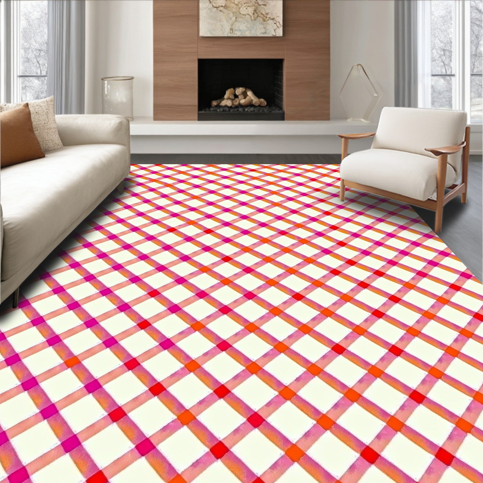 Checkered Grid Contemporary Interlocking Design(Pink)