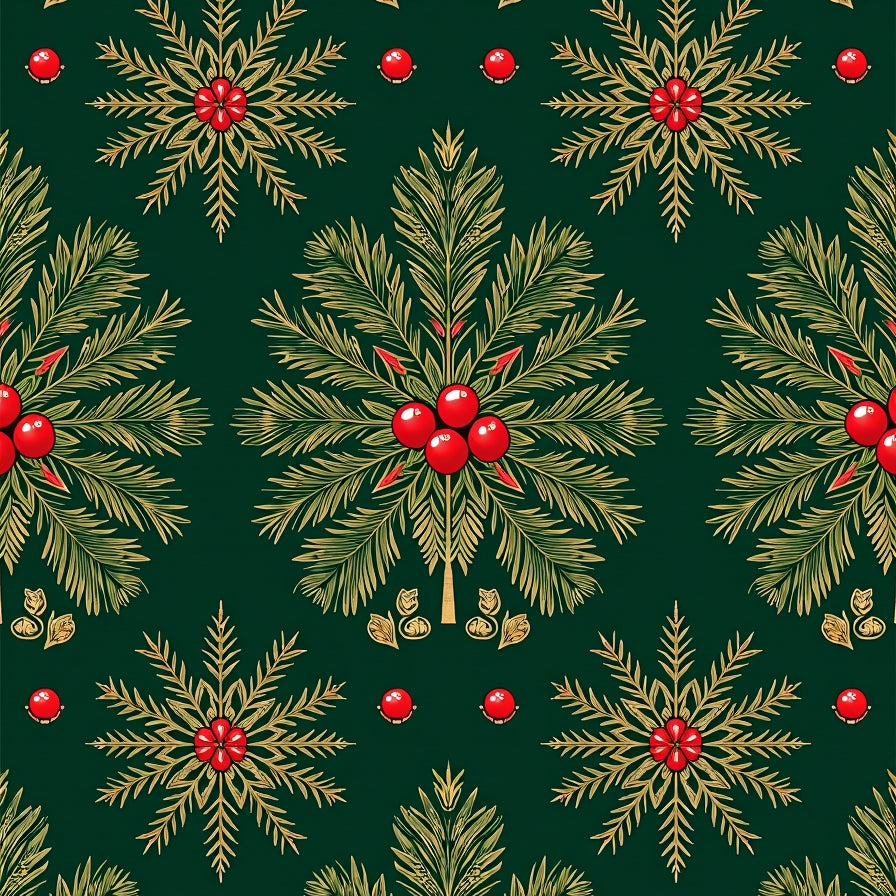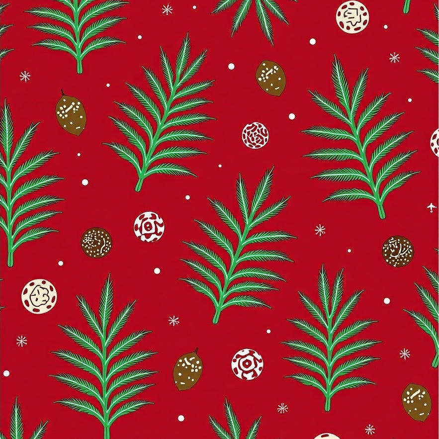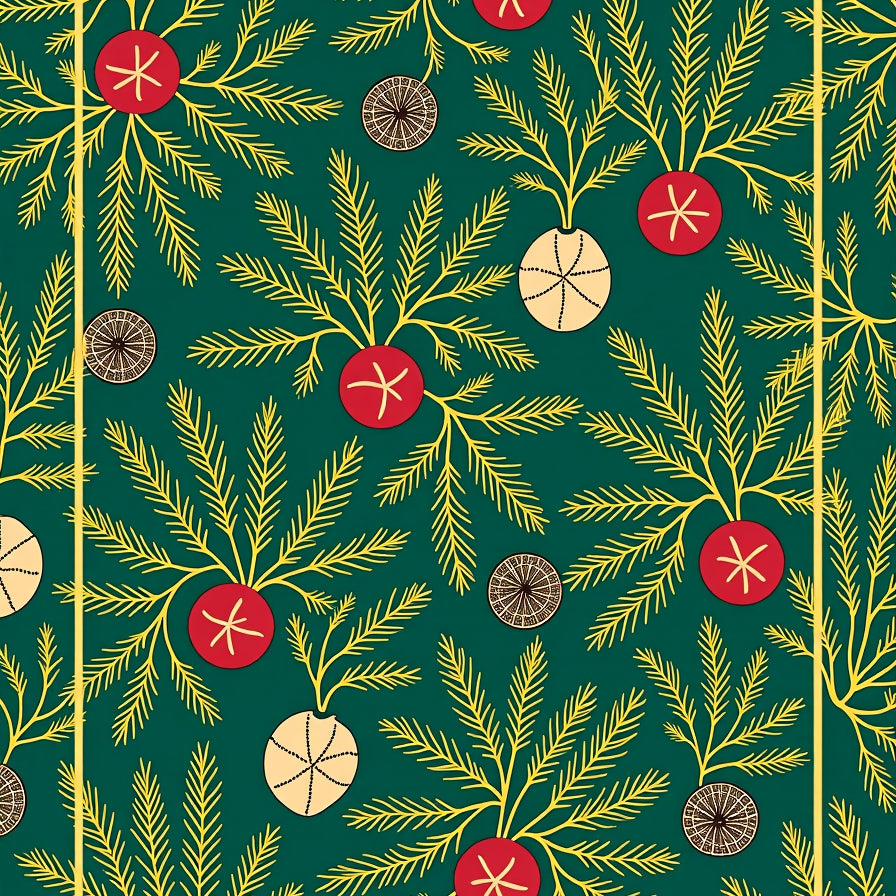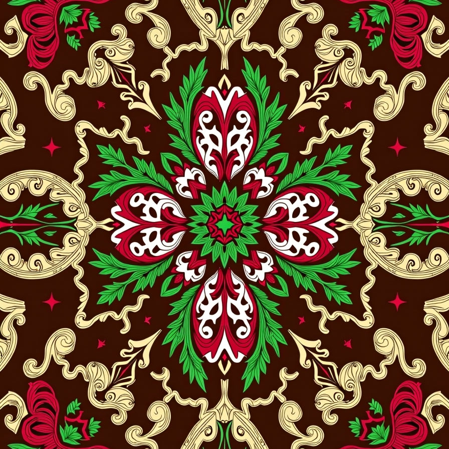 Festive Evergreen Foliage Medallion Scrollwork Patterned Holiday(Brown)