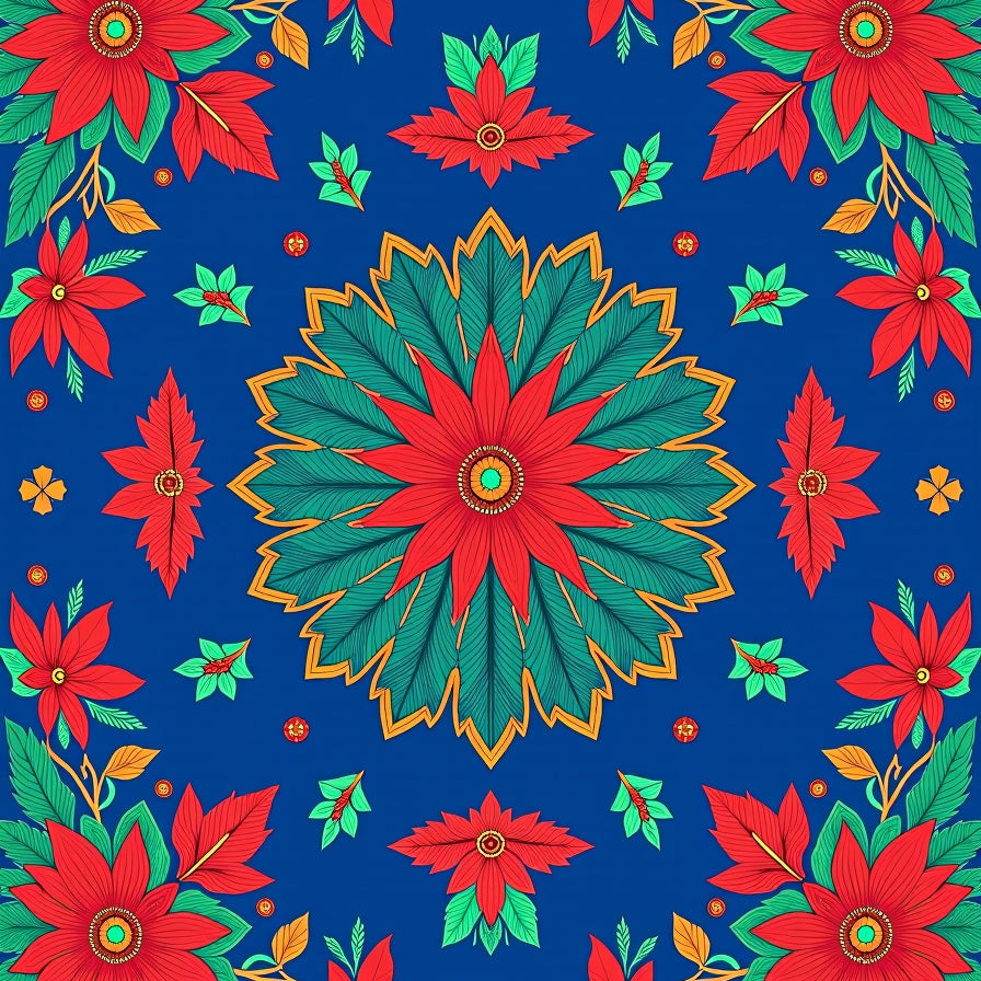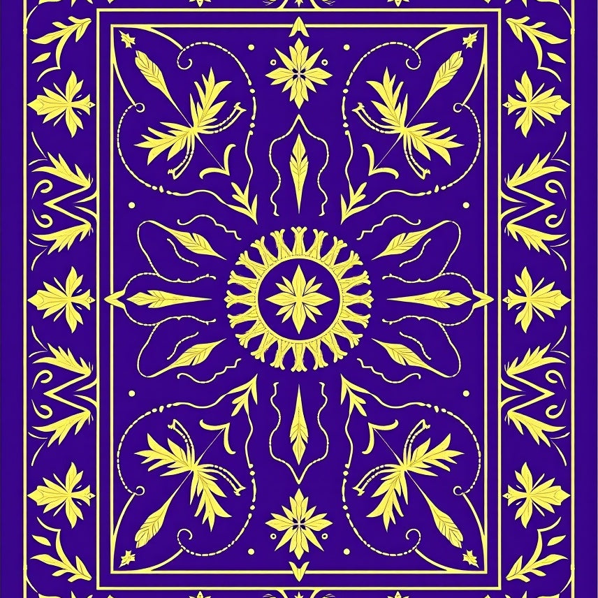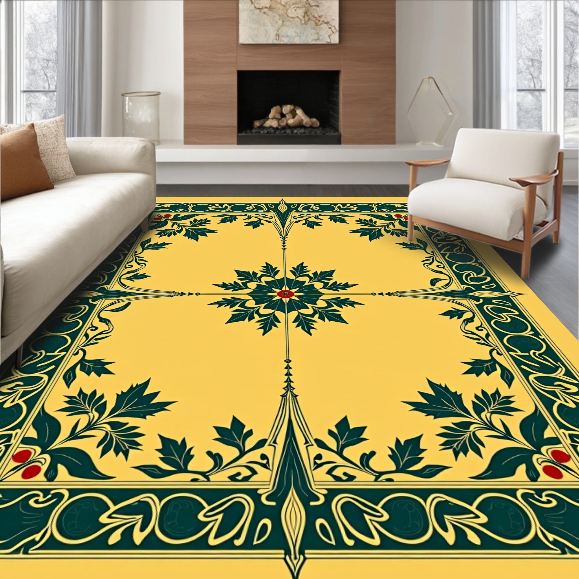 Festive Holly Leaf Medallion with Intricate Border Design(Yellow)