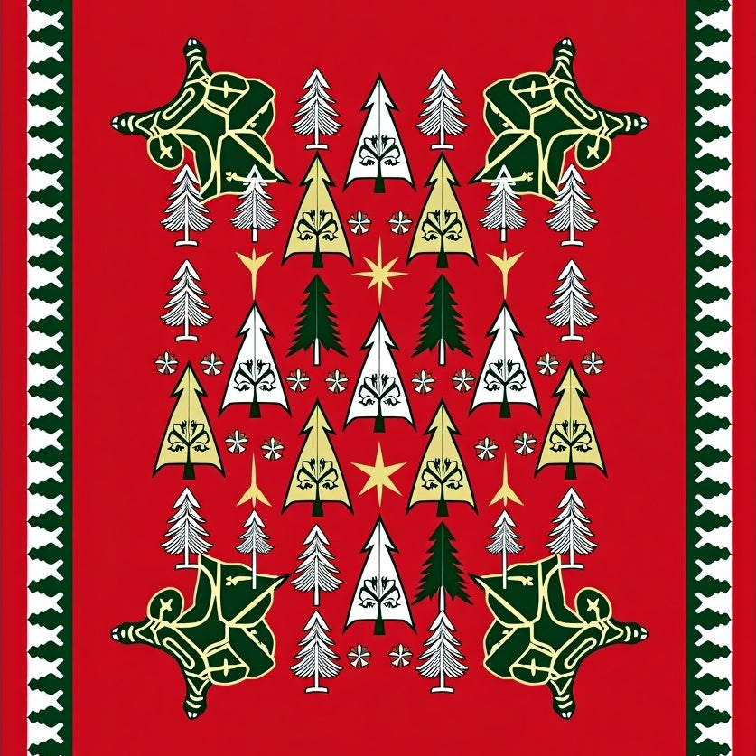 Nordic Fir Tree Motif Holiday Accent Interlocking(Red)