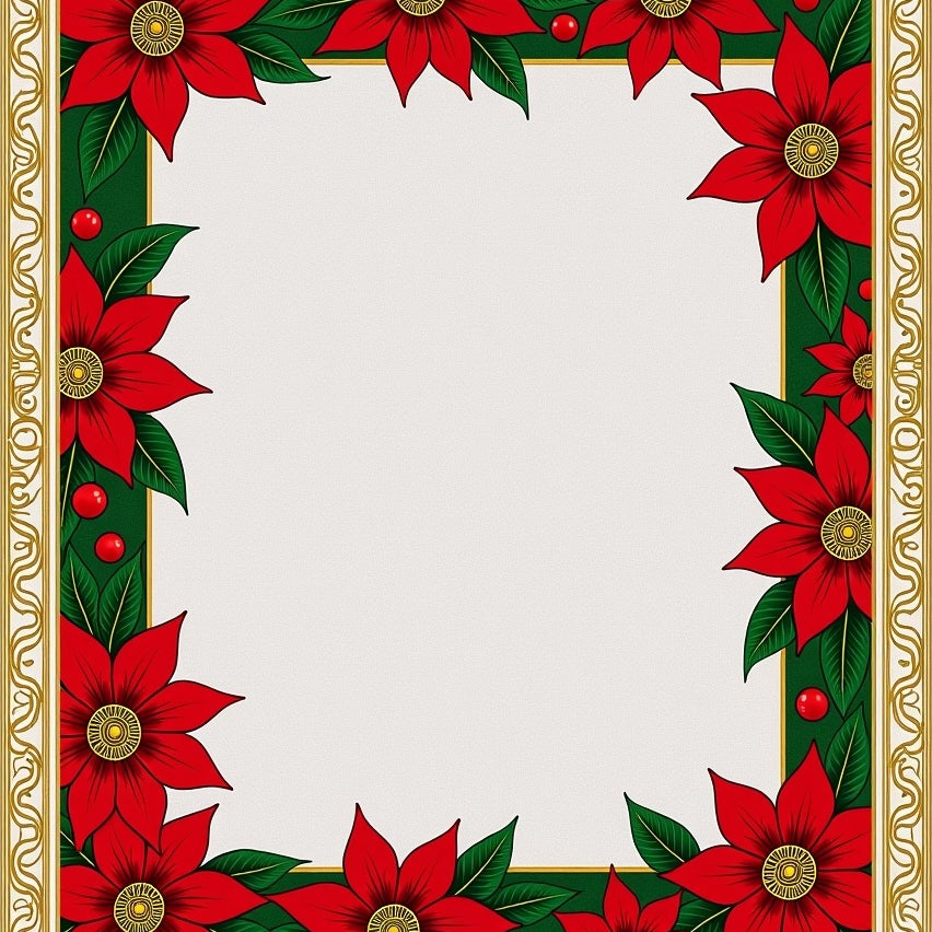 Poinsettia Bloom Christmas Entry with Golden Bell Borders(Red)