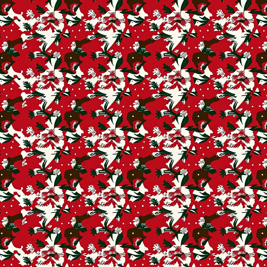 Playful Christmas Reindeer Forest Interlocking Design(Red)