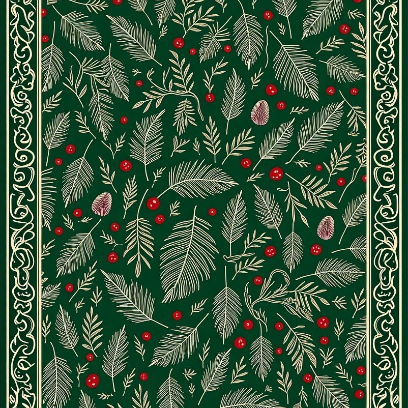 Pine Motif Non Skid with Rubber Base Holiday Theme(Green)