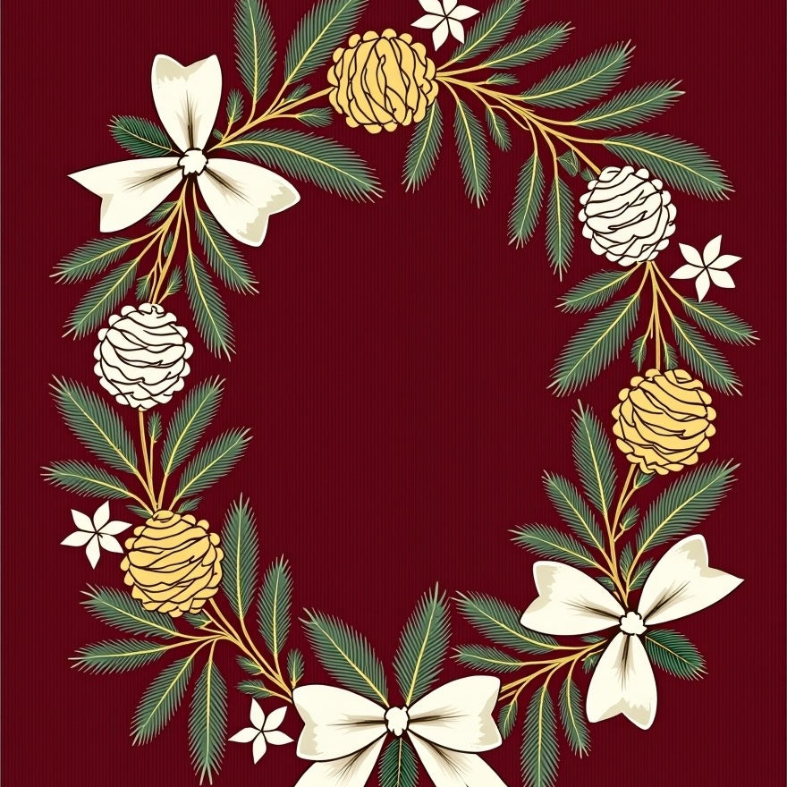 Classic Winter Pinecone with Berry Accents and Swirling Vines(Red)