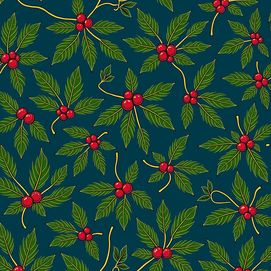 Jolly Santa Mosaic with Sprig and Holly Details(Red)