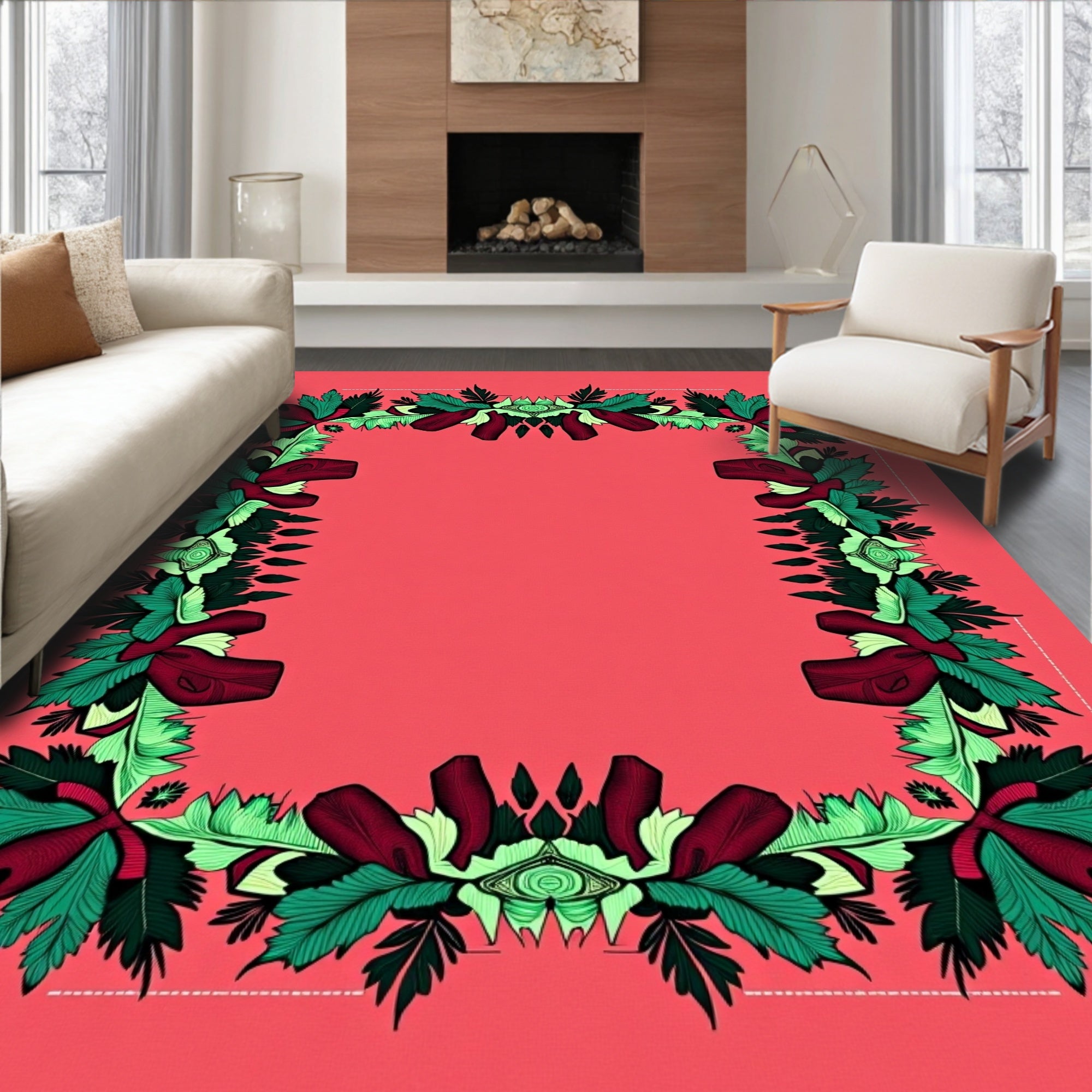 Wreath Border Design Anti Slip Hallway Holiday(Red)