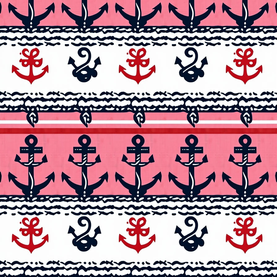 Nautical Anchor Motif Entry with Maritime Stripes(Pink)