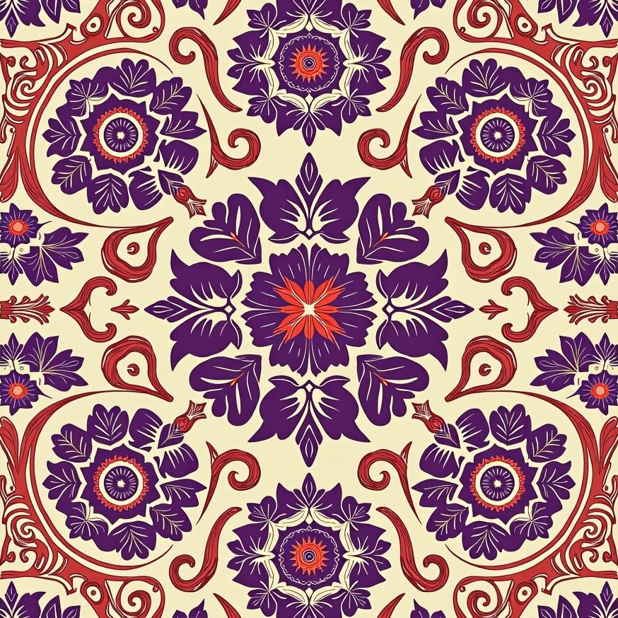 Vintage Floral Medallion with Classic Botanical Embellishments(Red)