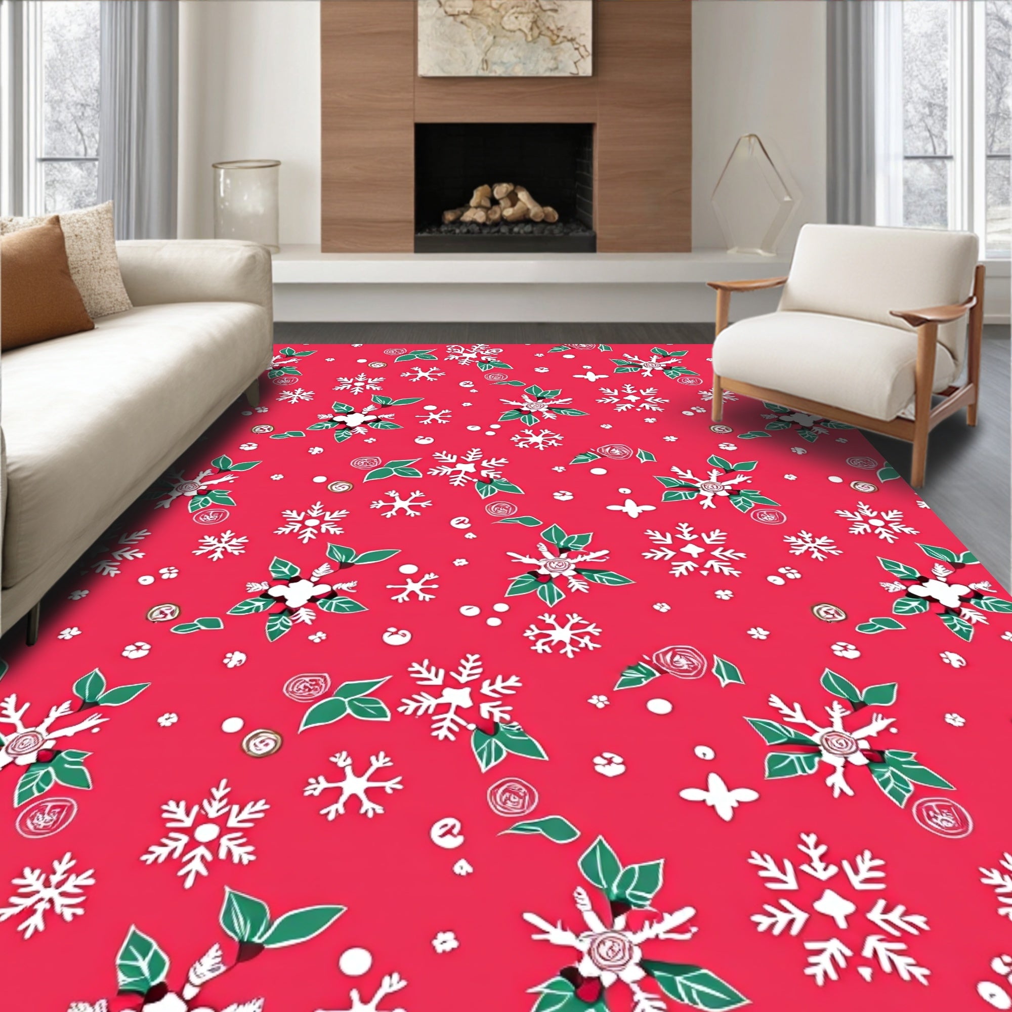 Snowflake Medallion Doormat with Winter Crystalline Motifs(Red)