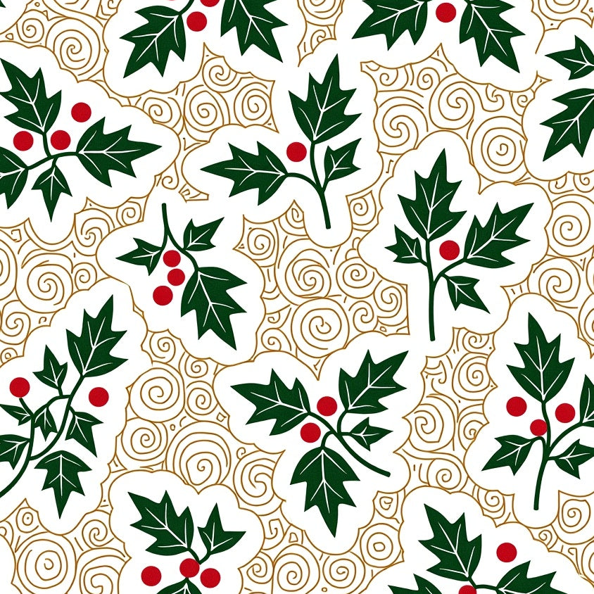 Elegant Holly Leaf with Crimson Berries and Subtle Swirling Lines(Green)