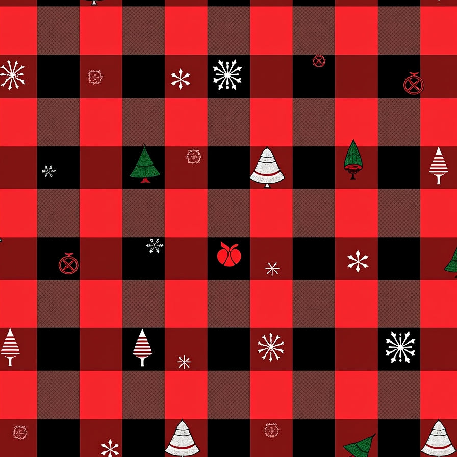 Festive Buffalo Check with Traditional Holiday Motifs(Red)