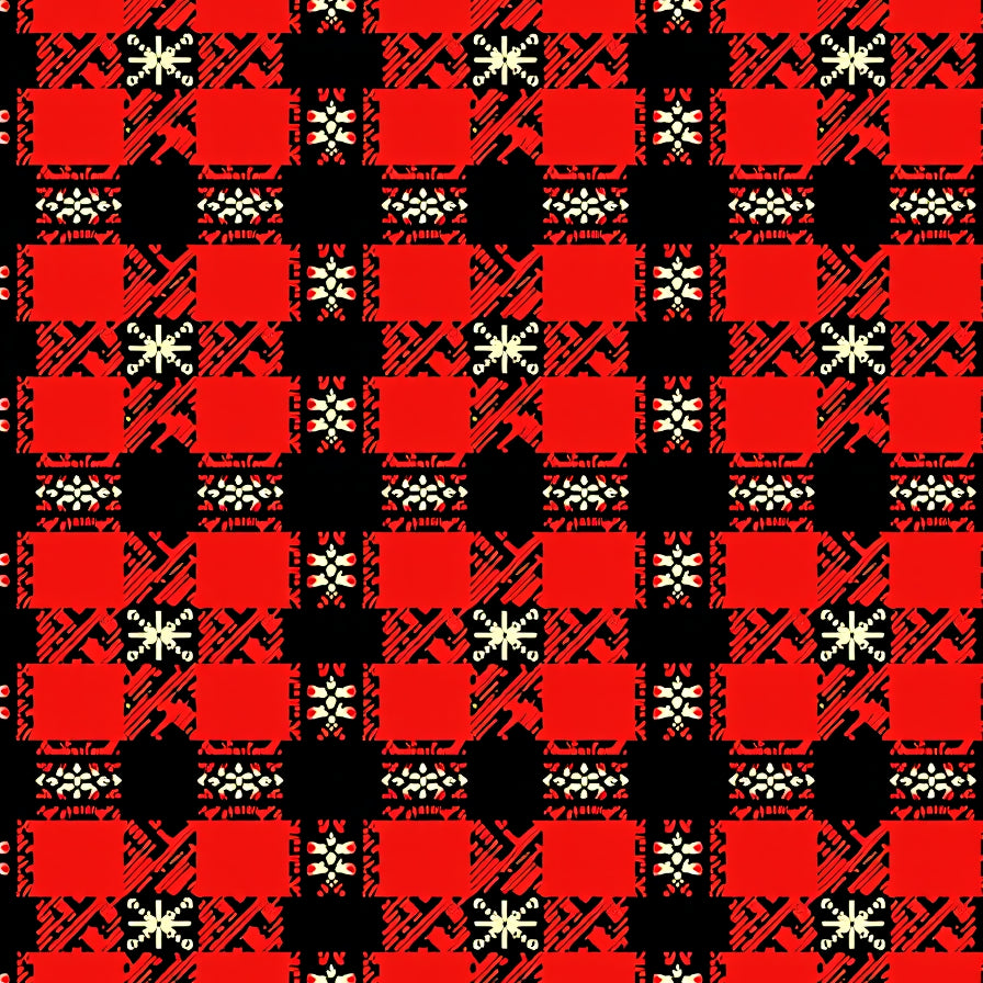 Winter Plaid with Nordic Snowflake Overlay(Red)