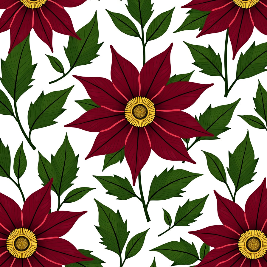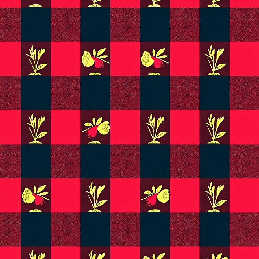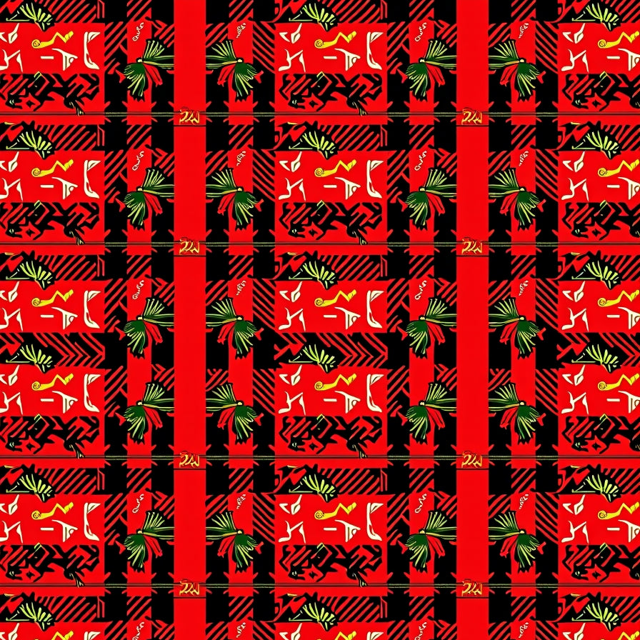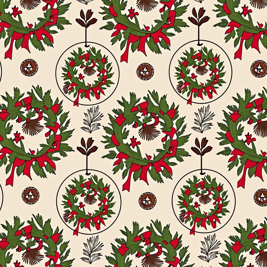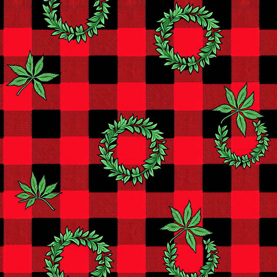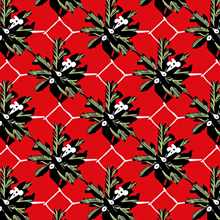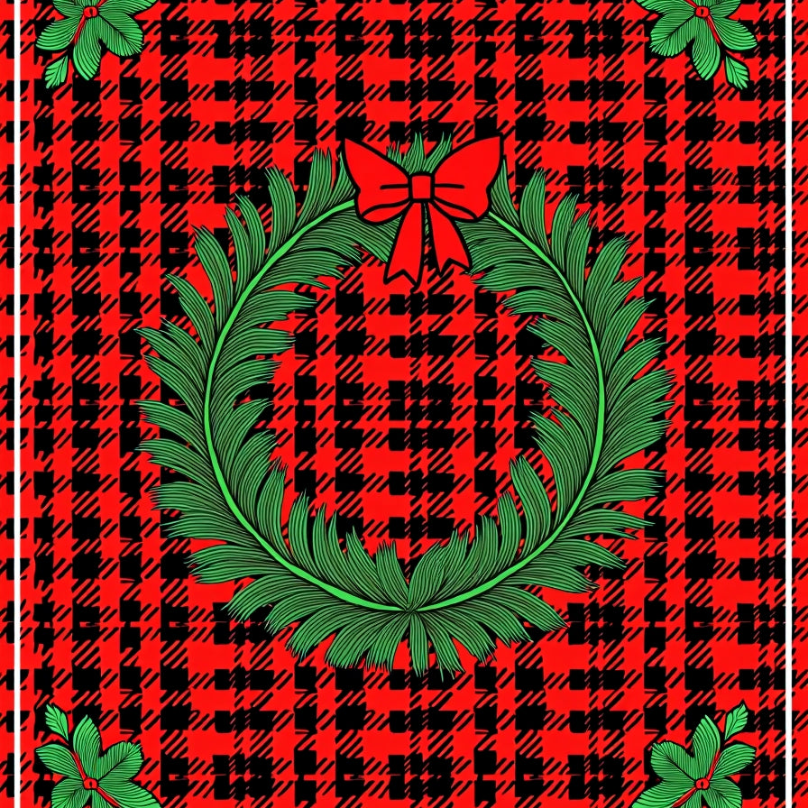 Yuletide Interlocking Plaid with Stylized Evergreen Sprigs(Red)