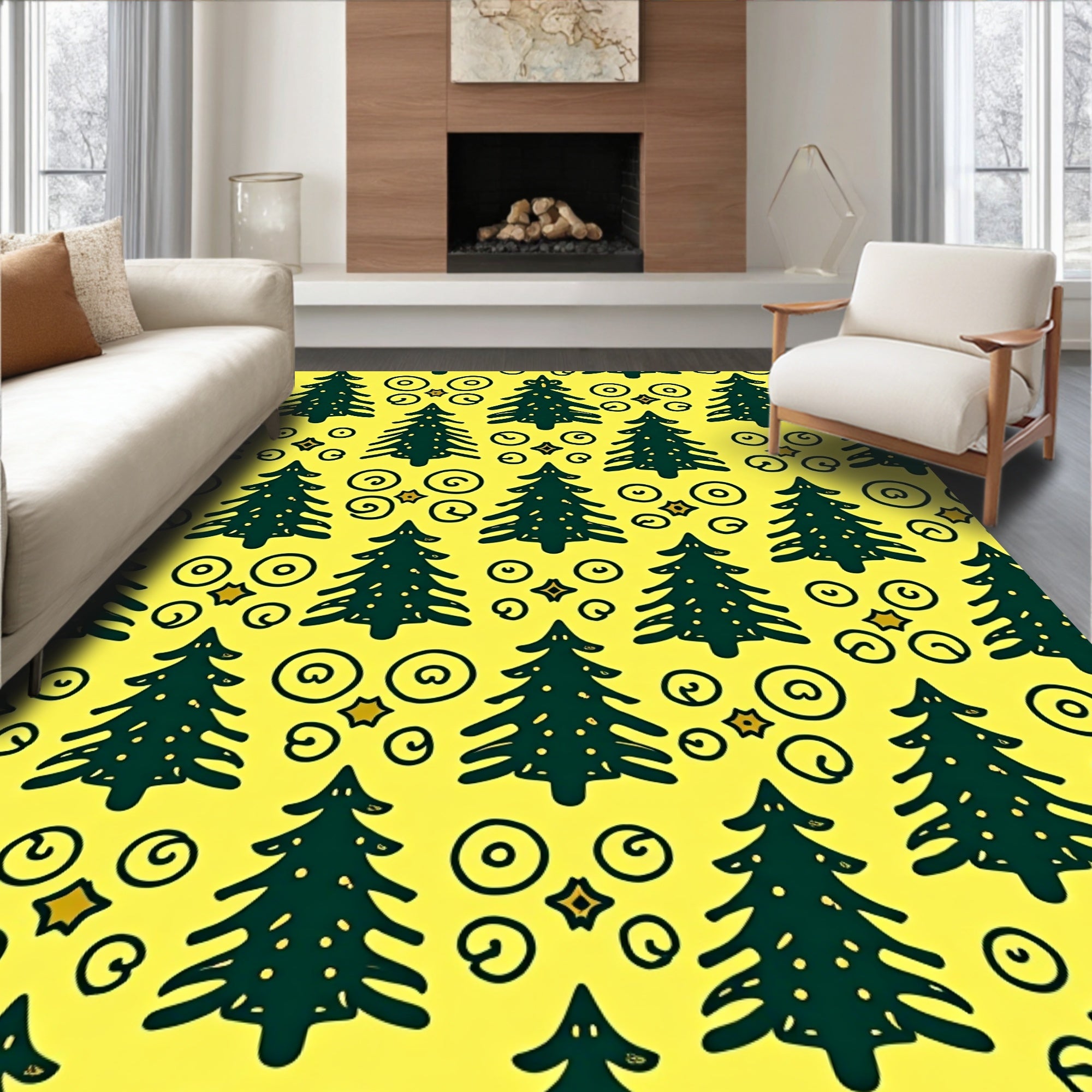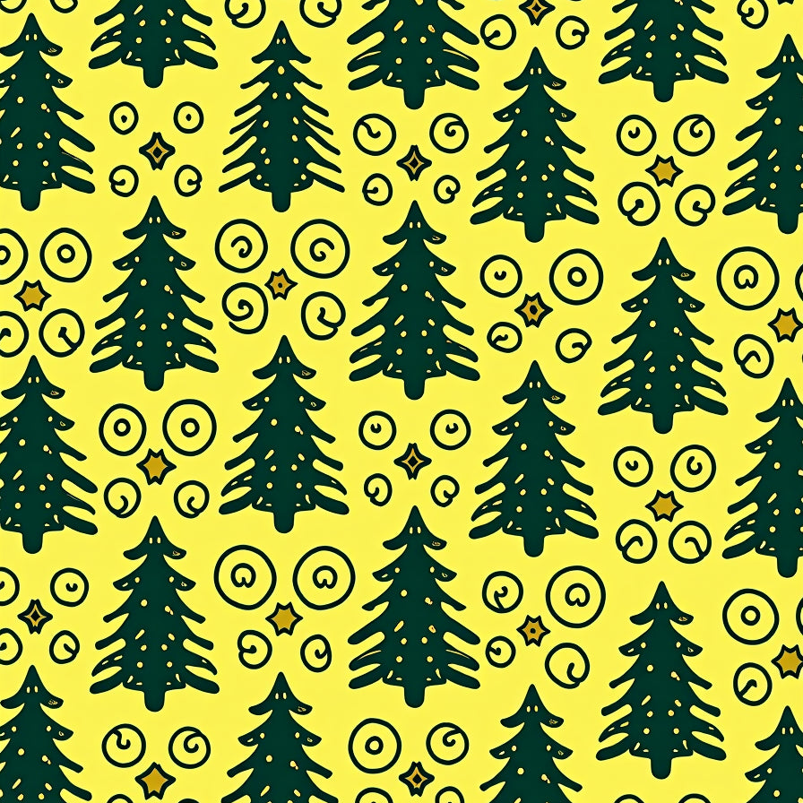 Festive Pine Silhouettes with Twinkling Accents and Curved Vine Motifs(Yellow)