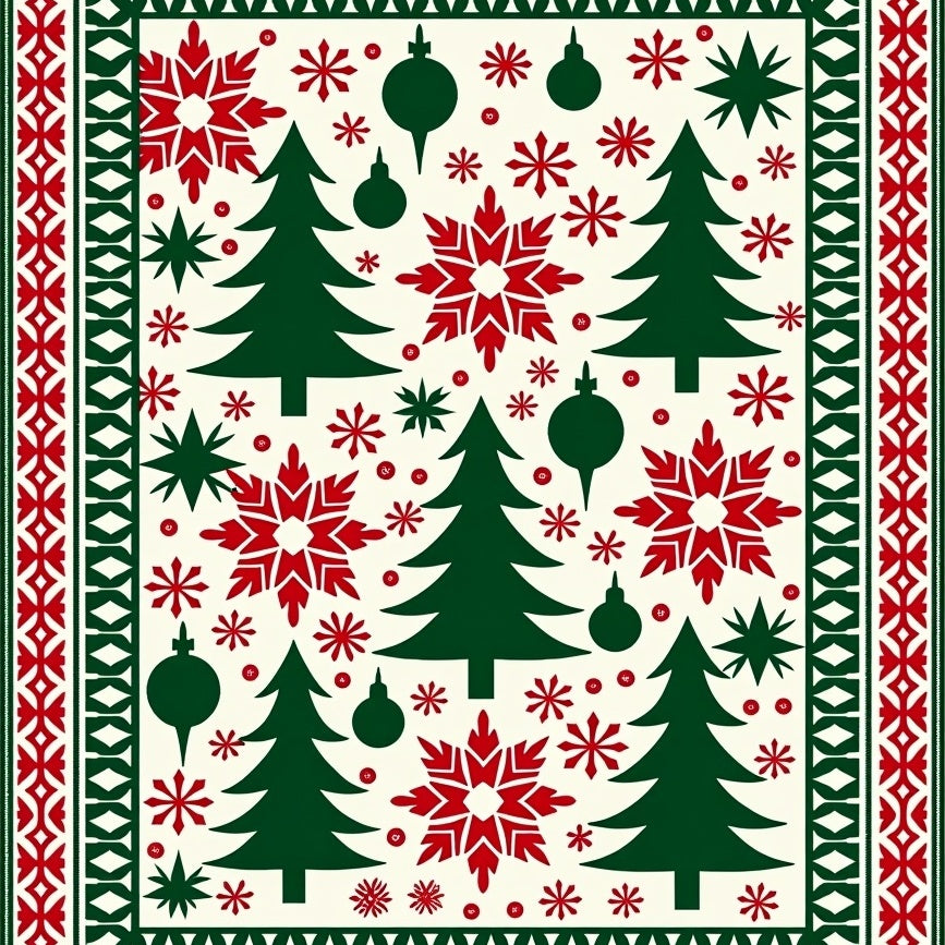 Nordic Yuletide with Festive Ornamental Accents(Red)