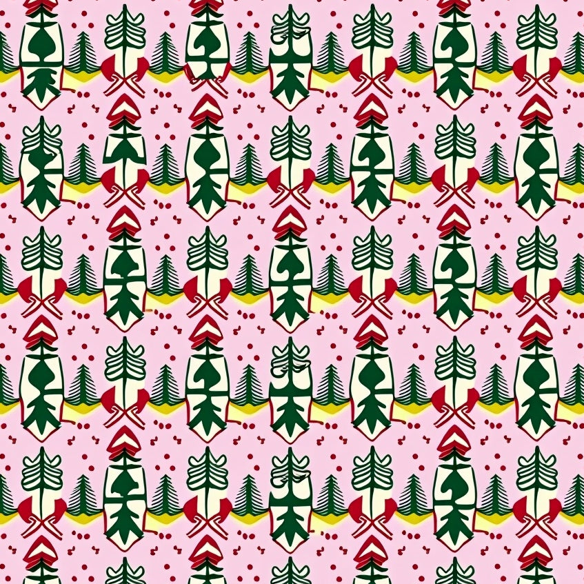 Scandinavian Evergreen Array with Stylized Snowfall(Pink)