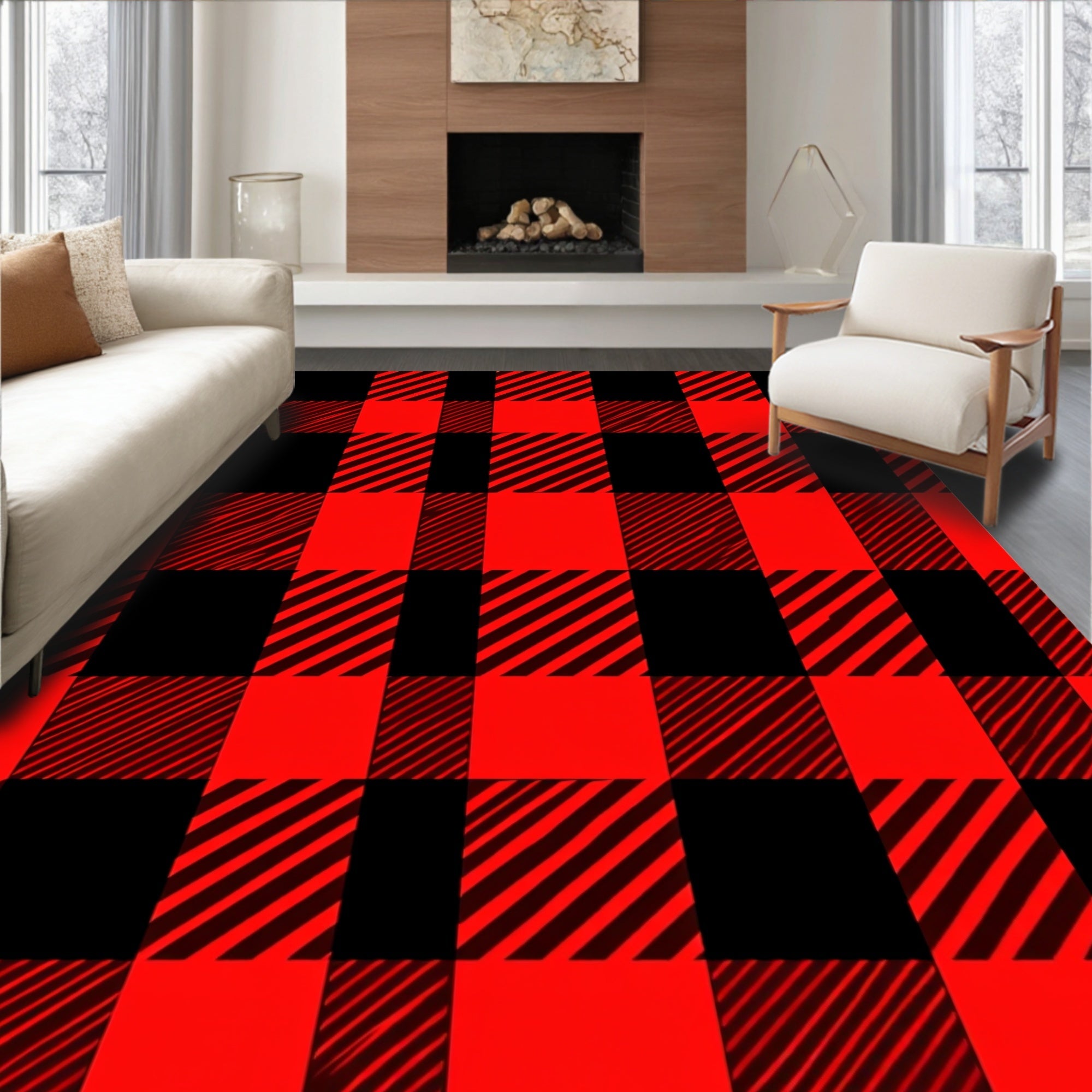 Festive Buffalo Check Doormat with Holiday Wreath Motifs(Red)