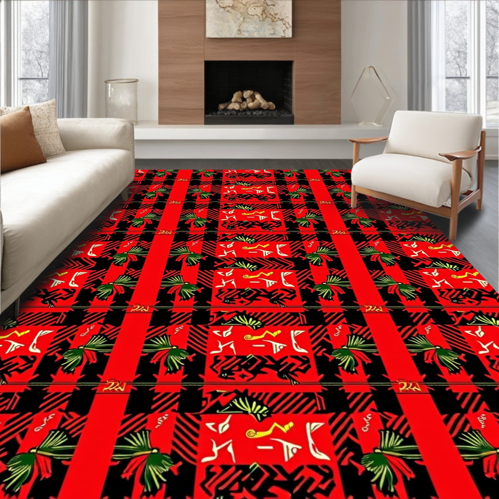 Festive Entry Plaid with Evergreen Branch Detailing(Red)