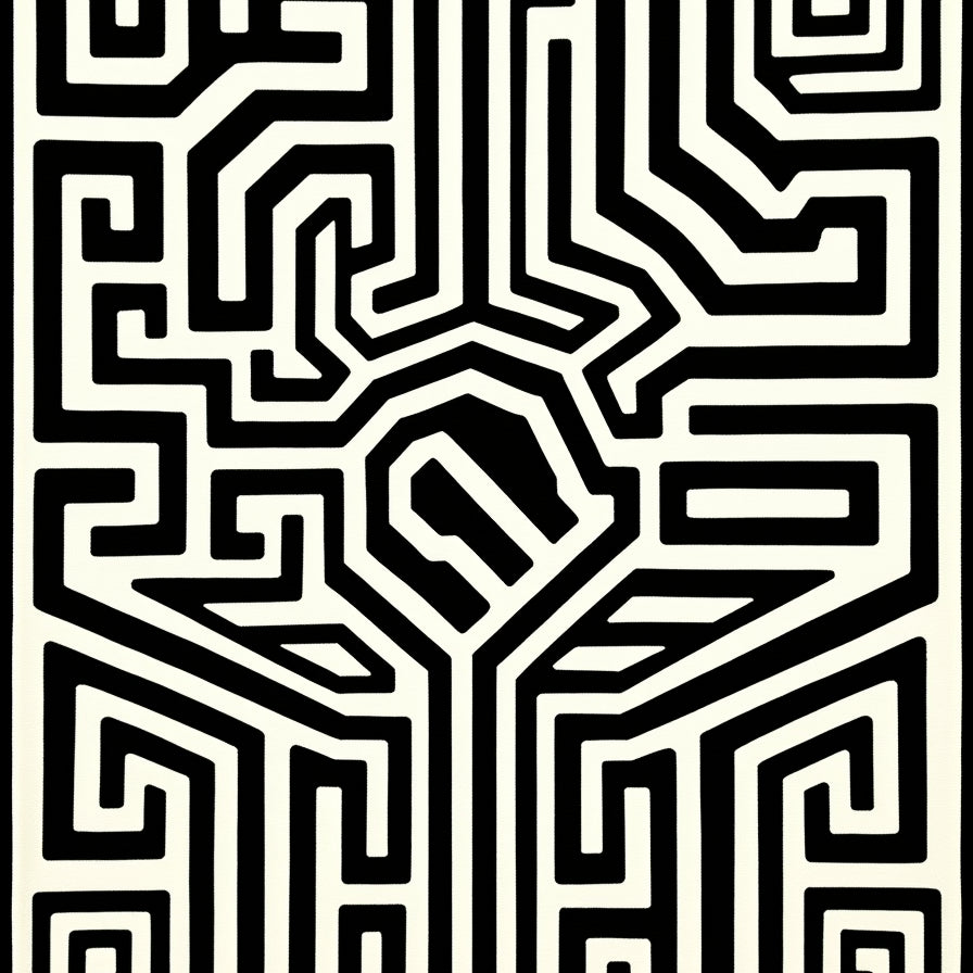 Abstract Monochrome Maze with Asymmetrical Interlocking Paths(Black)