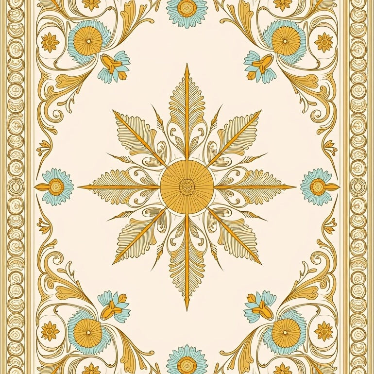 Vintage Medallion Scrollwork with Faded Botanical Motifs and Art Nouveau Accents(Gold)