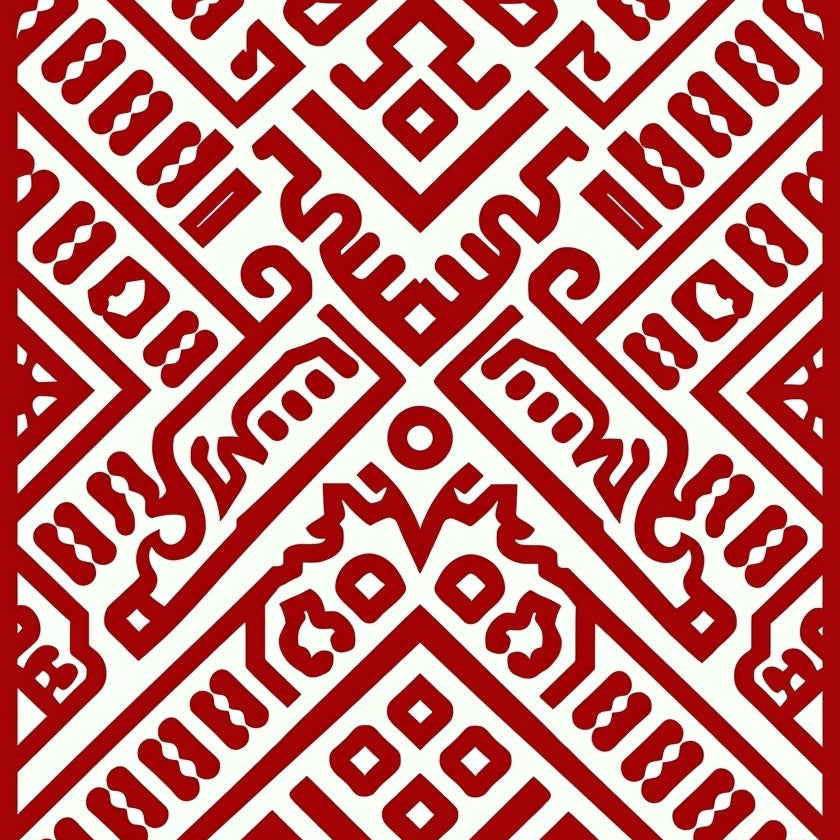 Nordic Motif with Interwoven Zigzag Flow(Red)