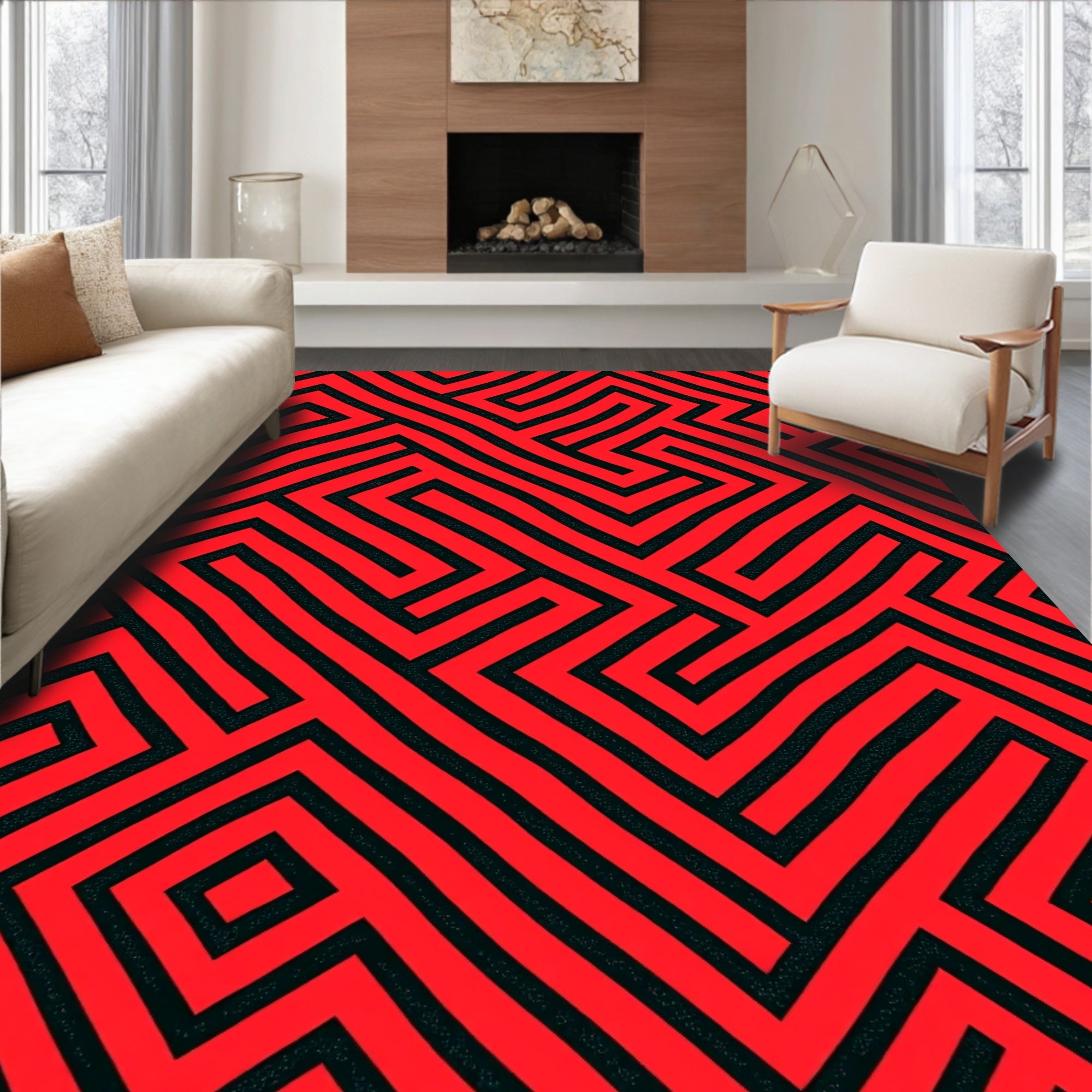 Interlocking Chevron Mosaic with Elegant Symmetrical Stripes and Curves(Red)