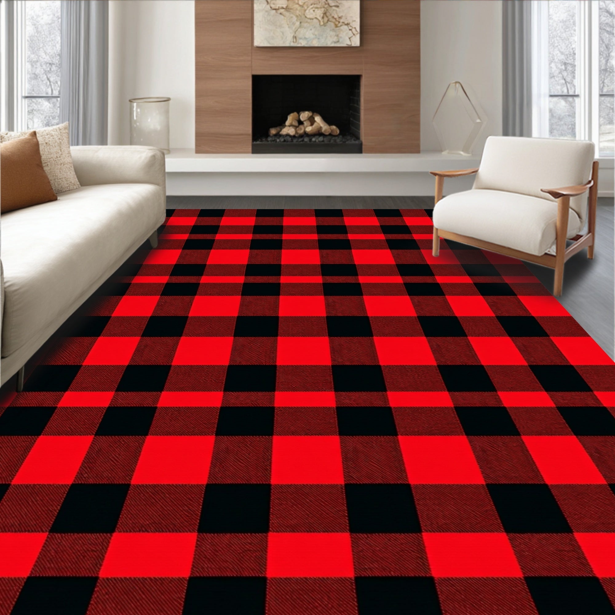 Festive Buffalo Plaid Holiday Evergreen Collection Decorative Floor(Red)