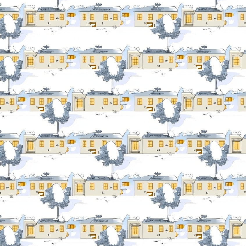 Winter Wonderland Scenic with Snowy Village Landscape(Beige)