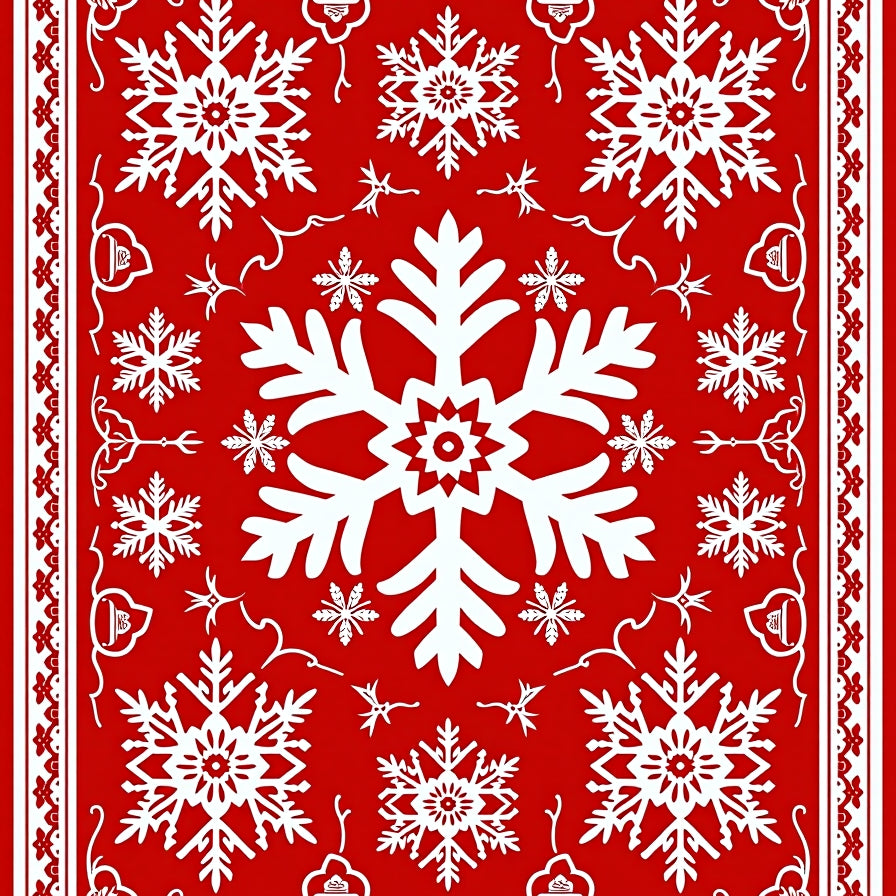 Festive Snowflake Medley with Nordic Inspired Swirls and Motifs(Red)