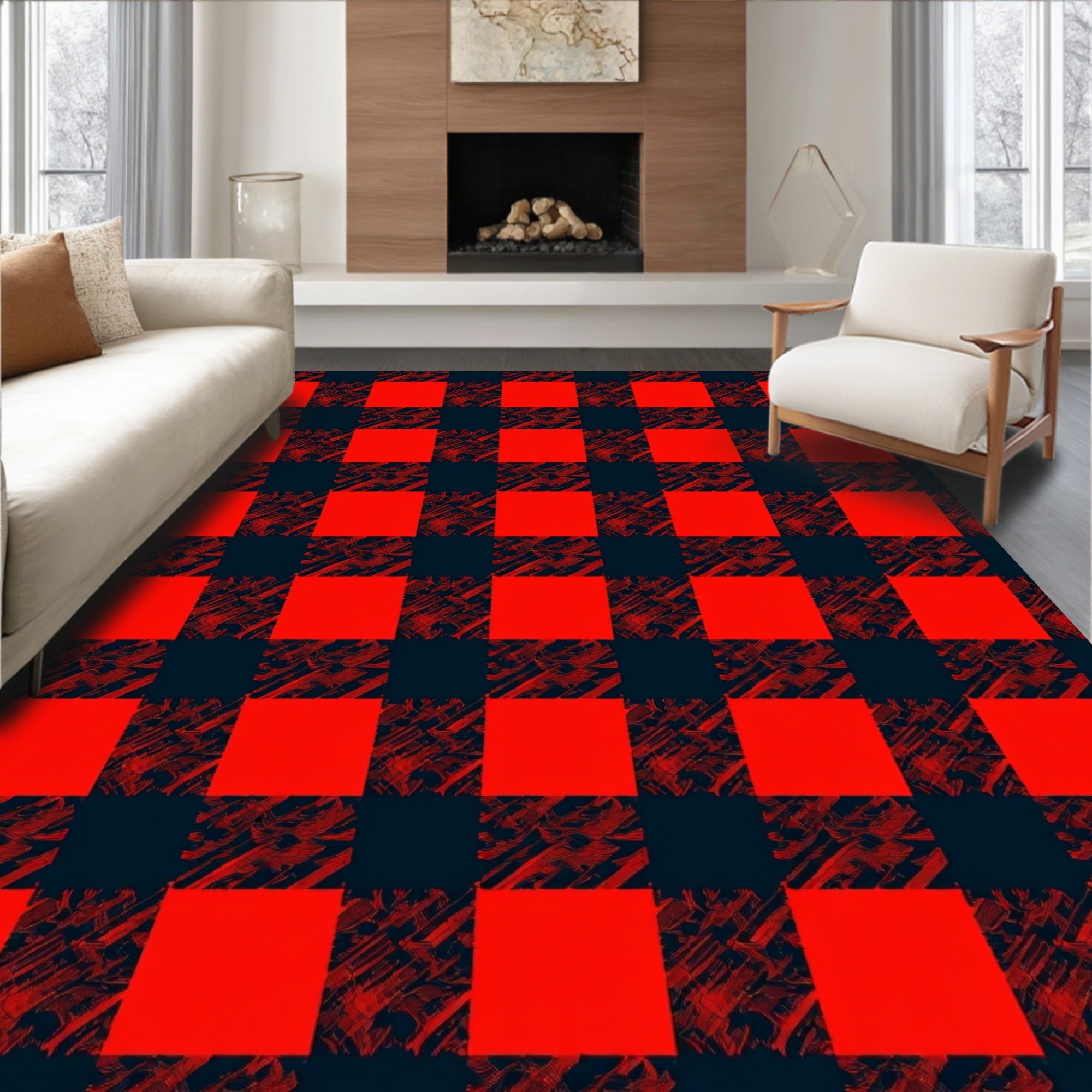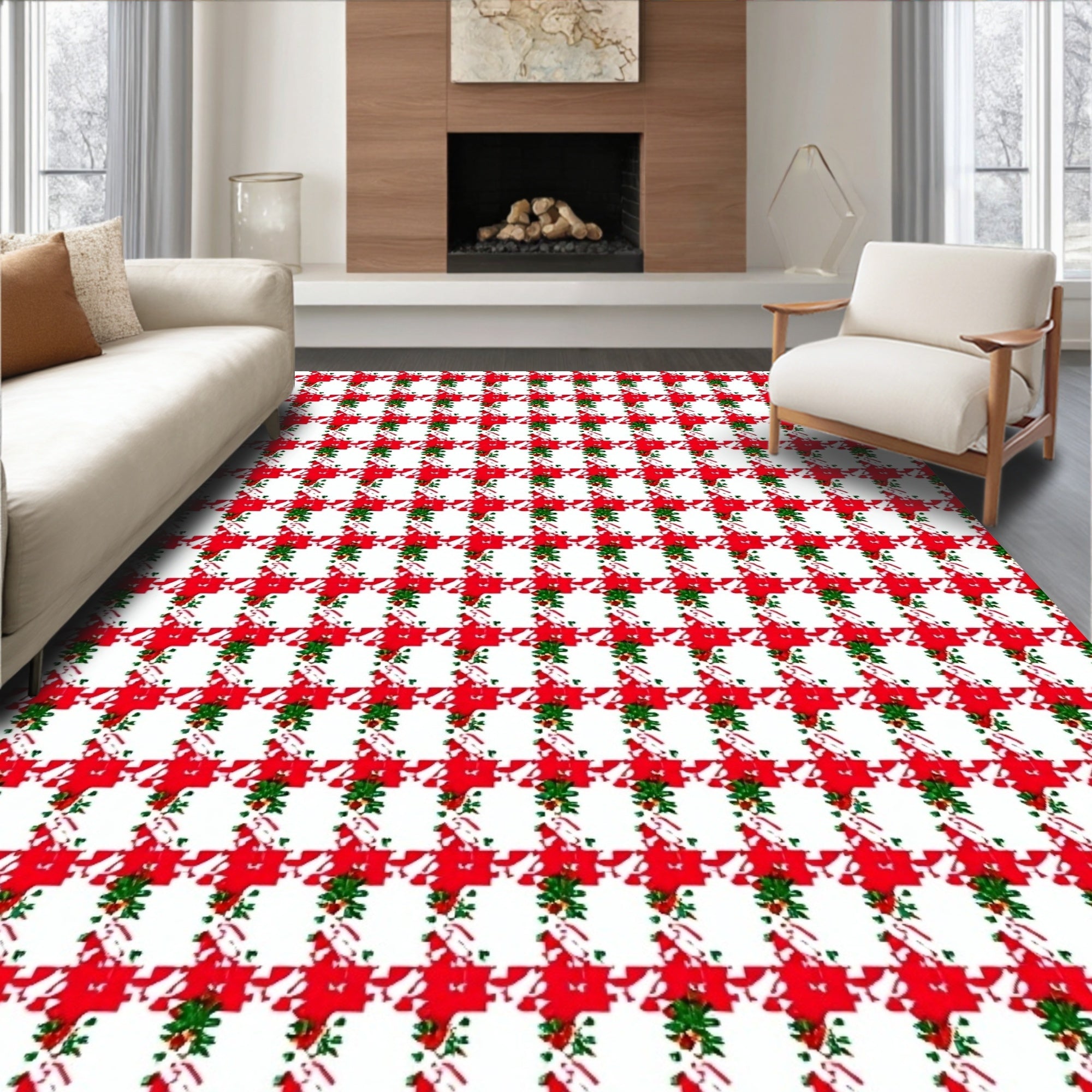 Yuletide Checkered Decorative Floor Covering(Red)