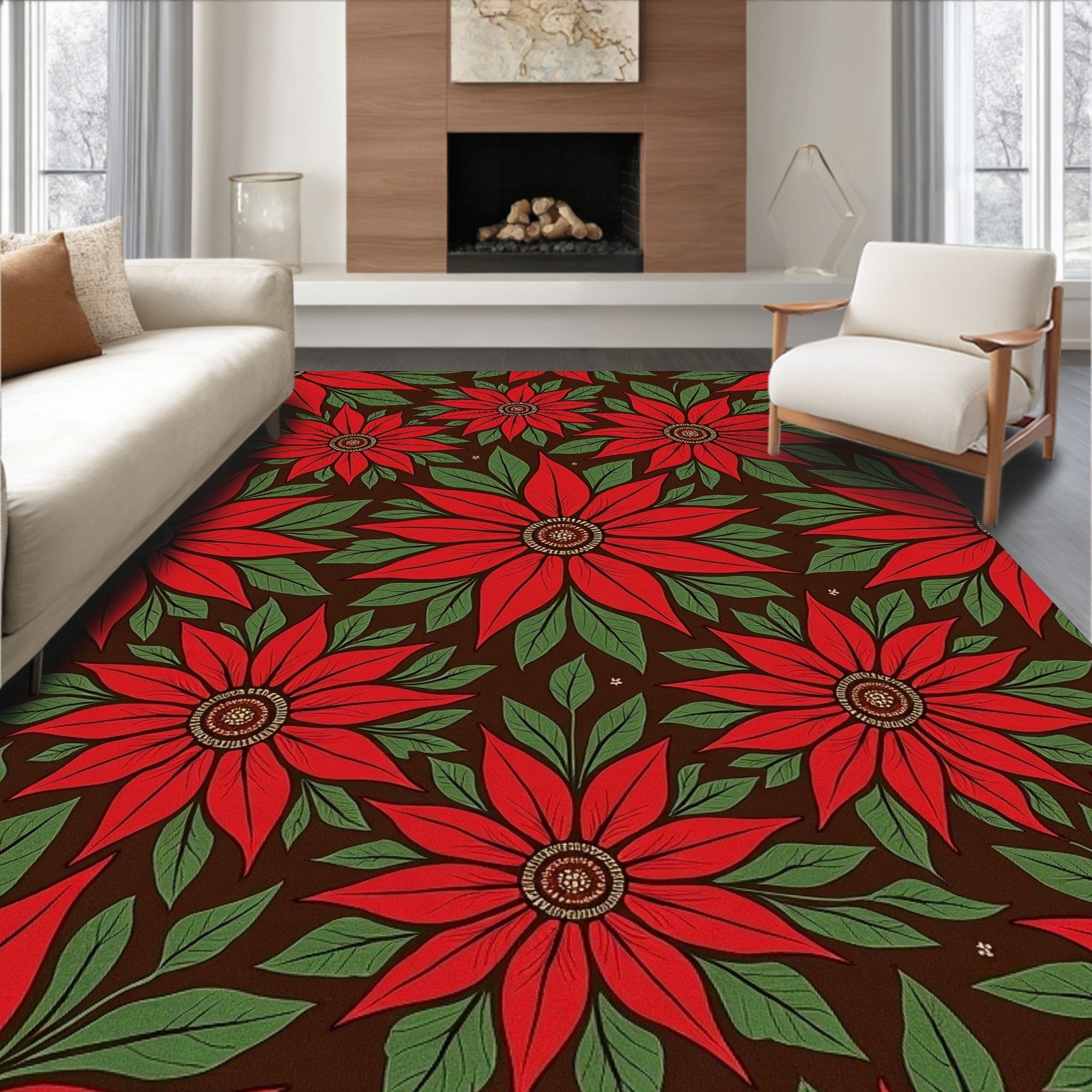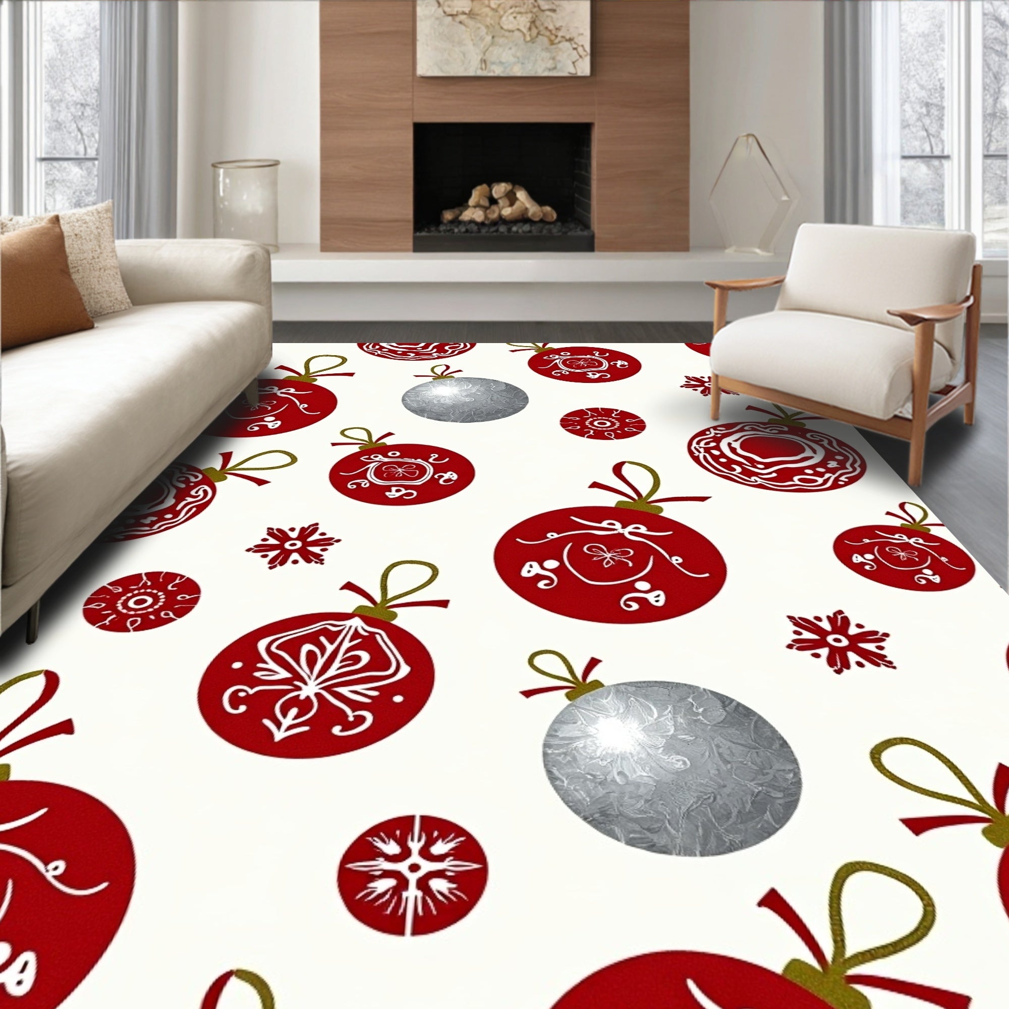 Winter Wonderland Ornamental Design Decorative Floor Covering(Red)