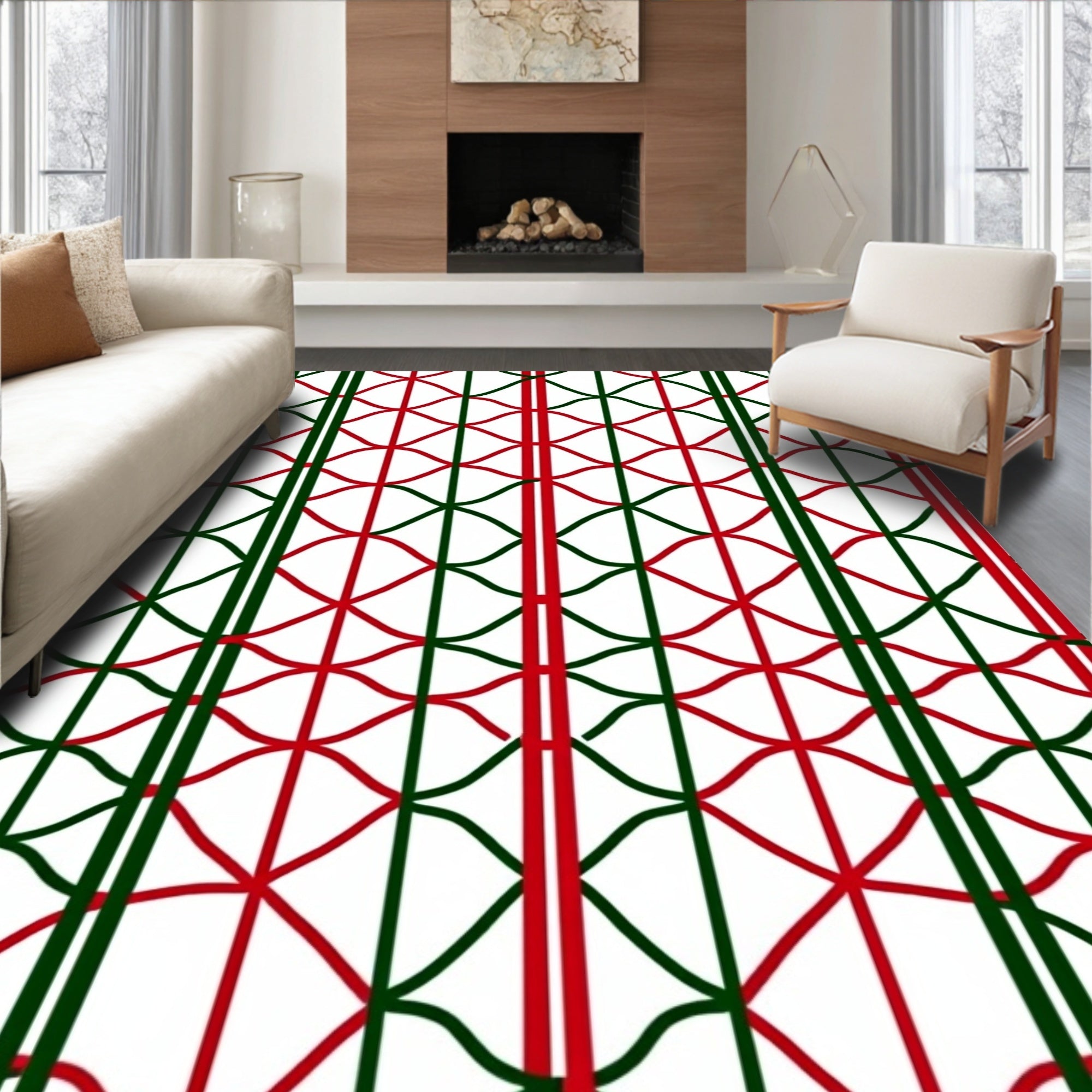 Holiday Tartan Motif Floor Design(White)
