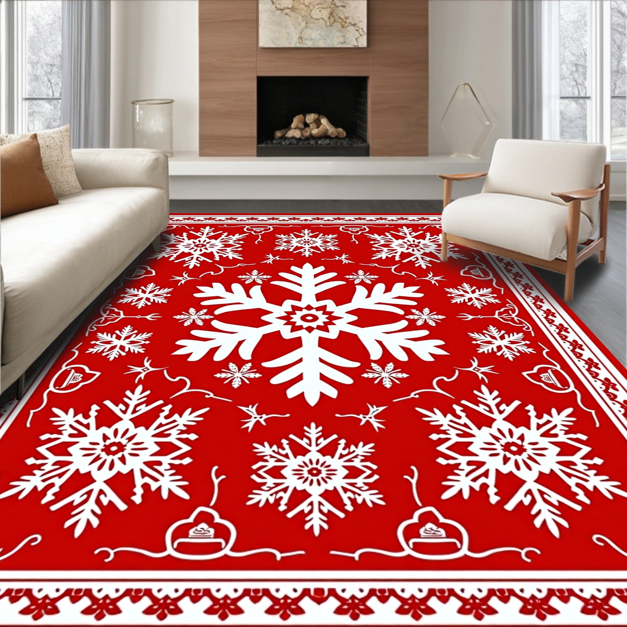 Festive Snowflake Winter Holiday Decorative Floor(Red)