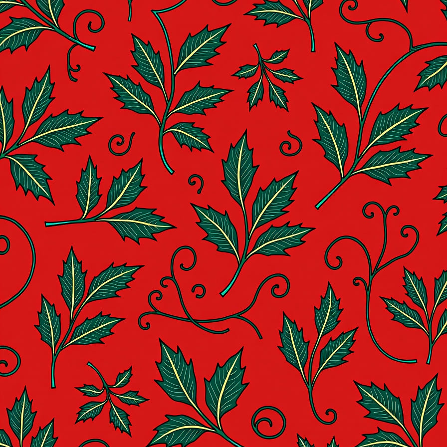 Holly Berry Vine with Traditional Festive Botanical Design(Yellow)