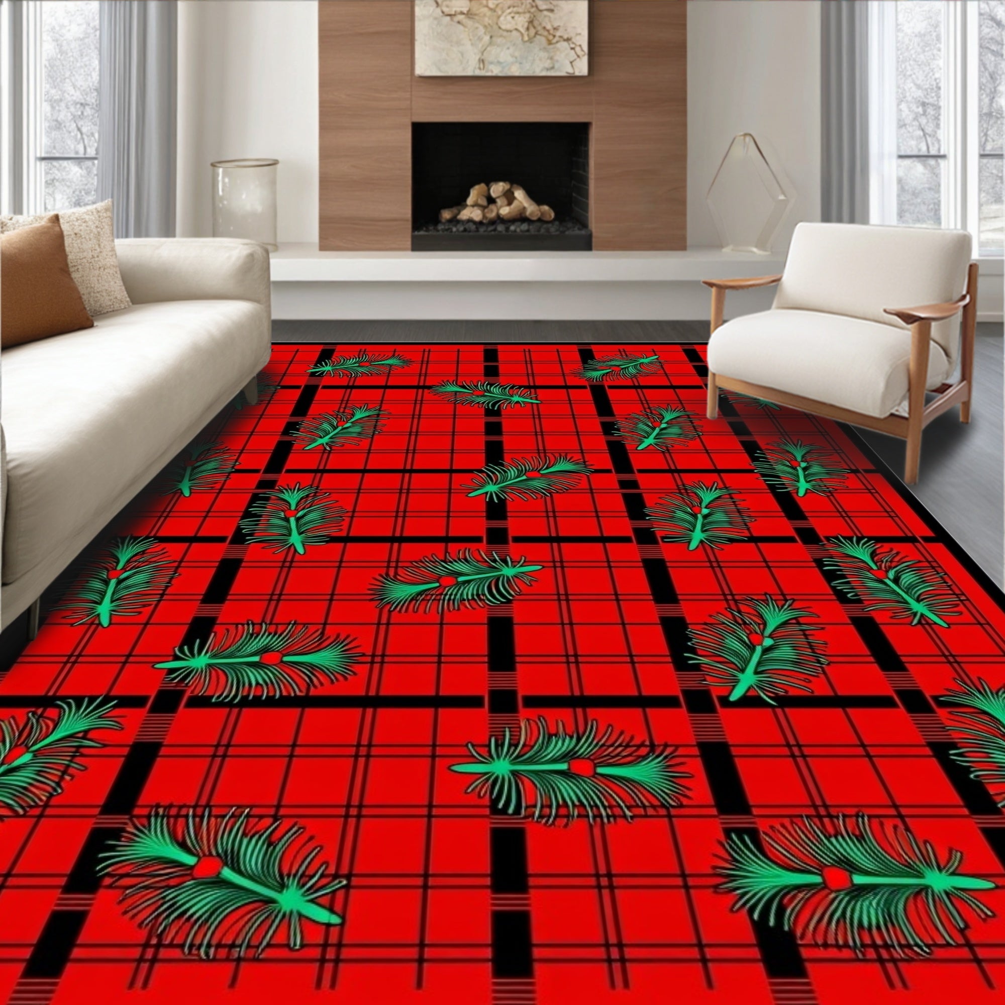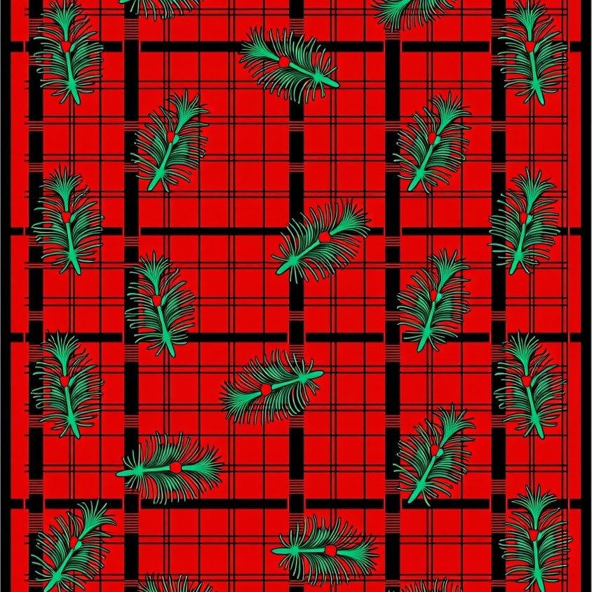 Buffalo Checkered Tartan with Classic Holiday Pine Accents(Red)