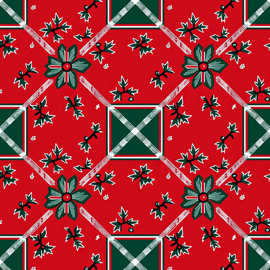Festive Tartan Plaid with Holly Berry Cluster Detailing(Red)