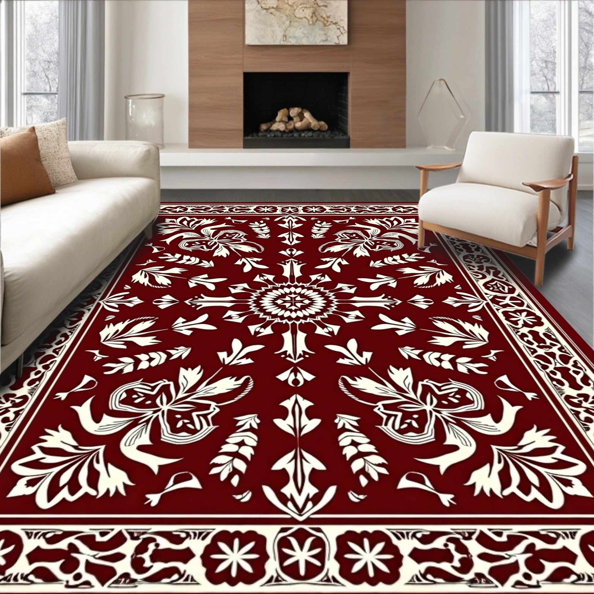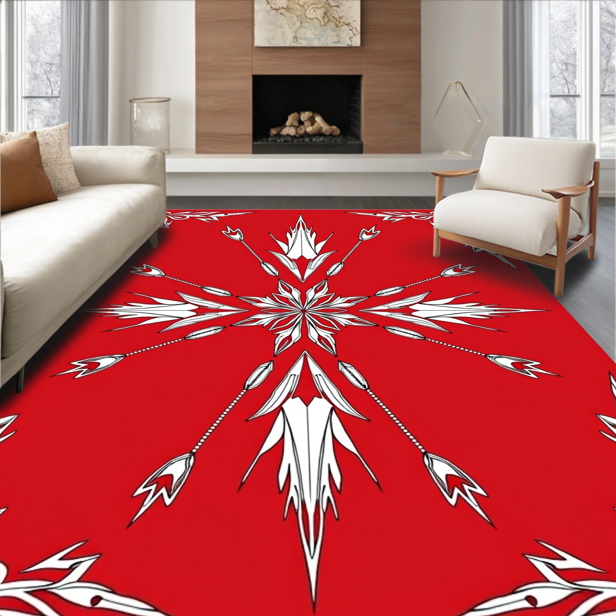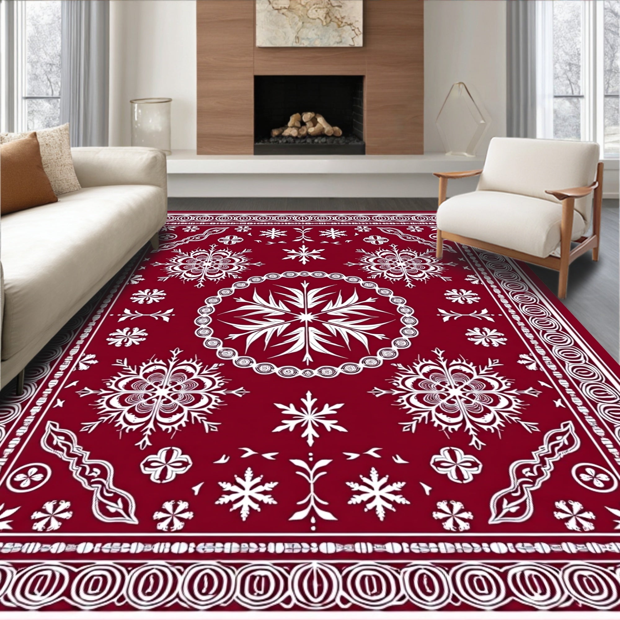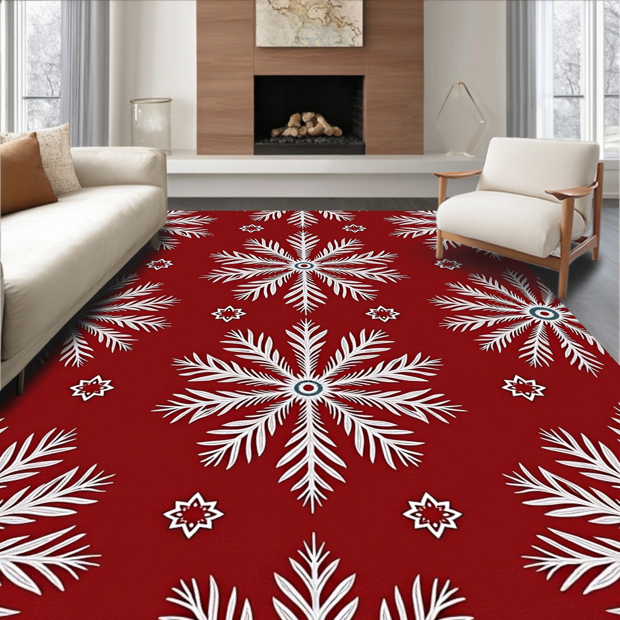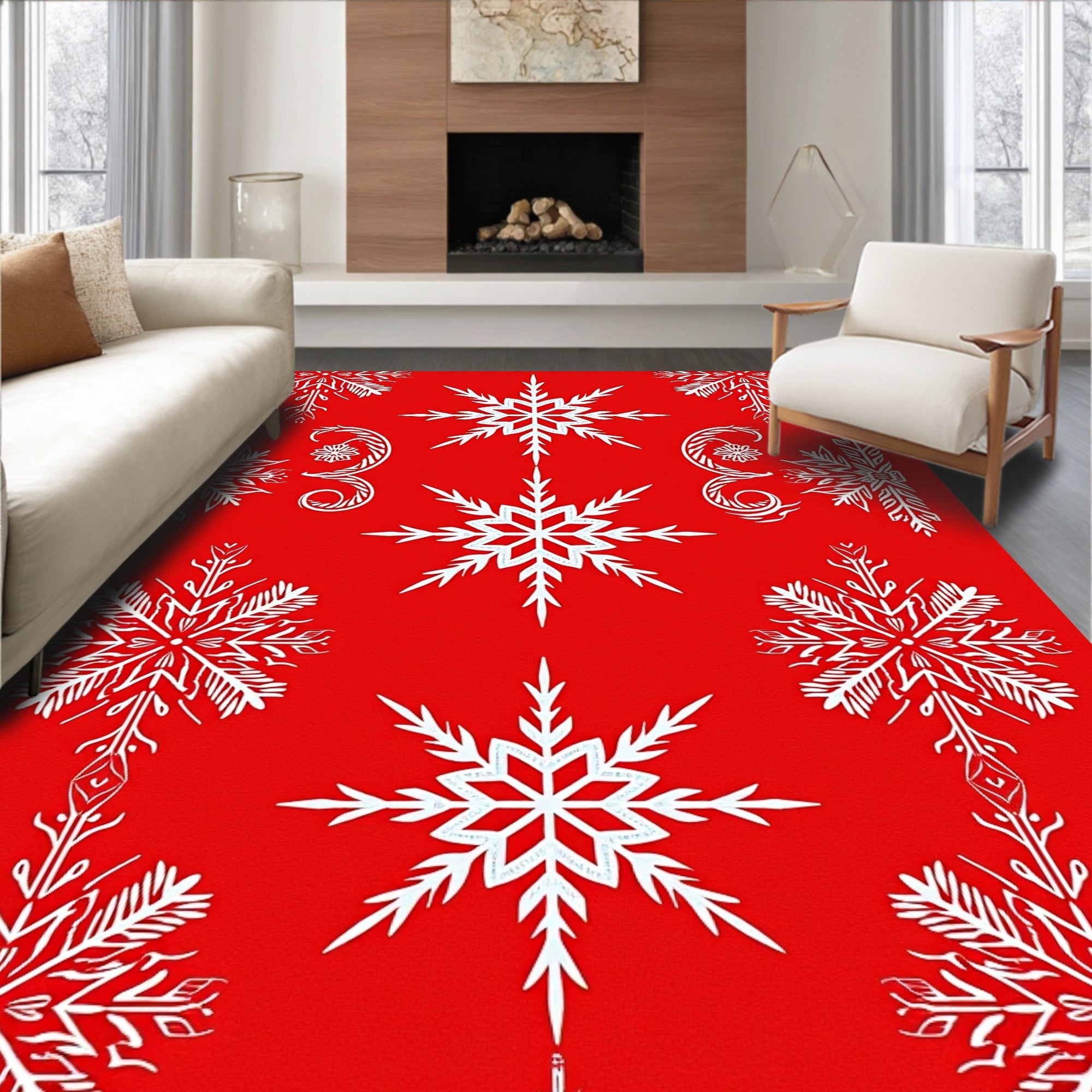 Festive Snowflake Winter Holiday Accent Flooring Circular Decoration(Red)