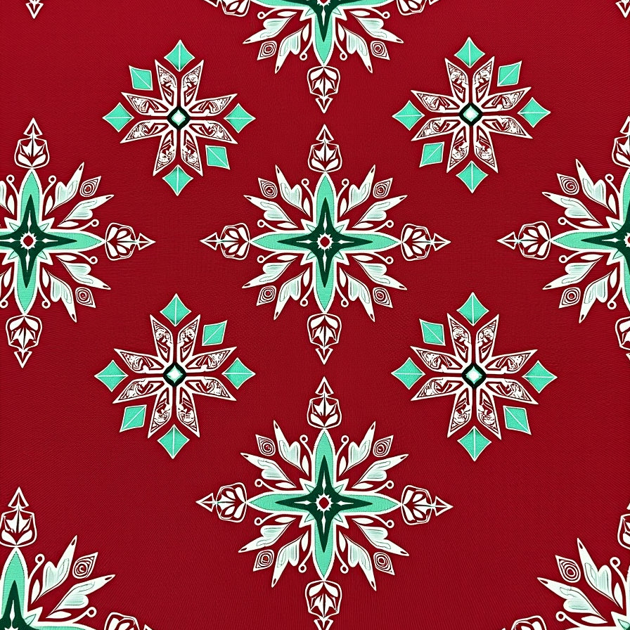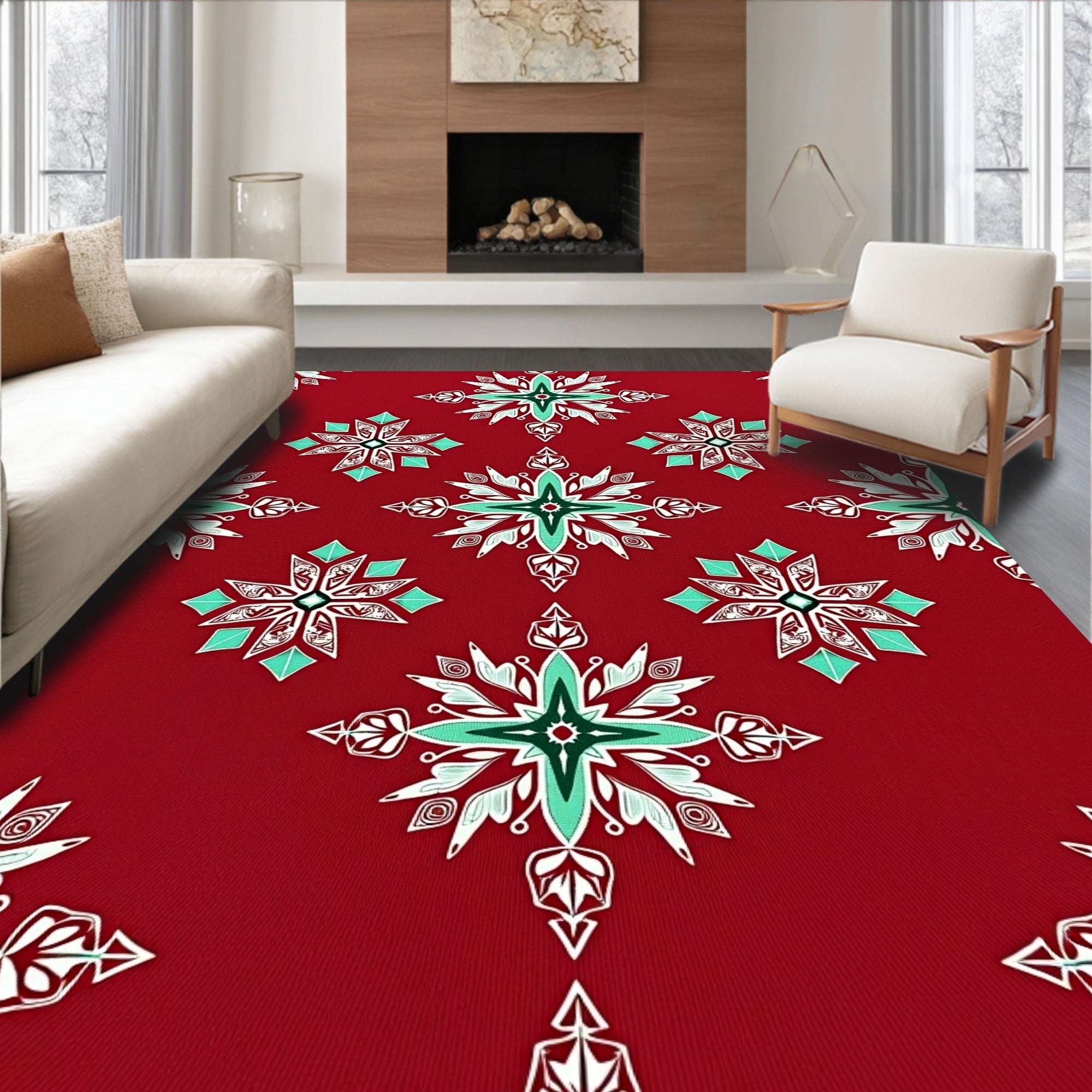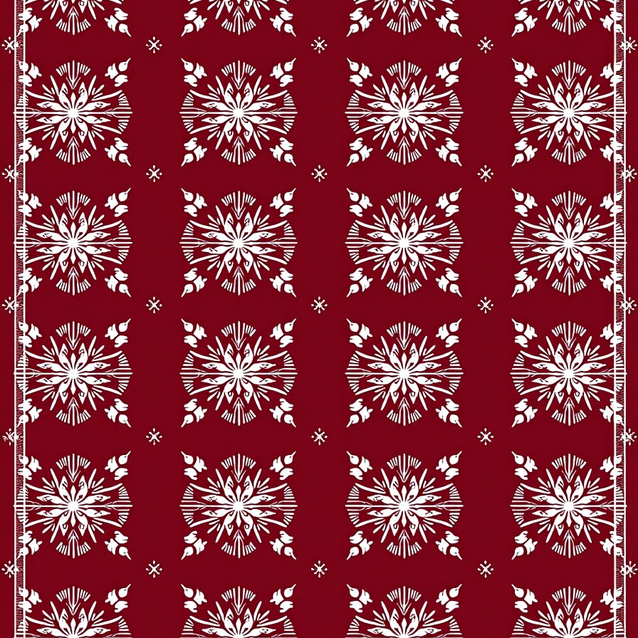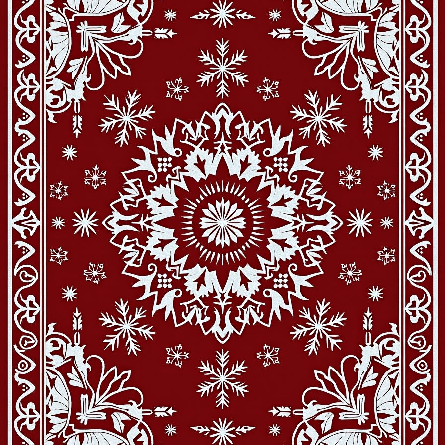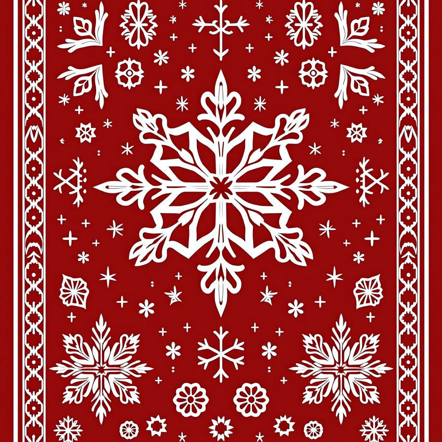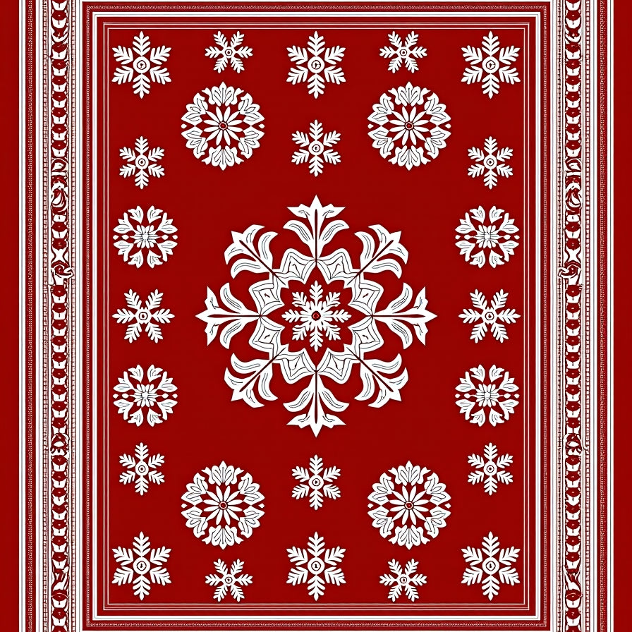 Winter Snowflake Tapestry with Crystalline Motifs(Red)