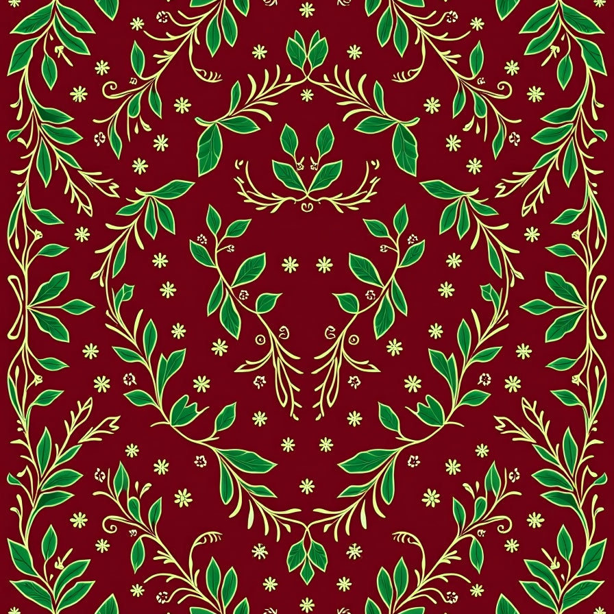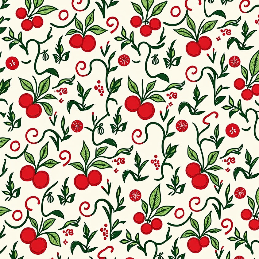 Festive Holly Berry with Traditional Holiday Botanical Motifs(Red)