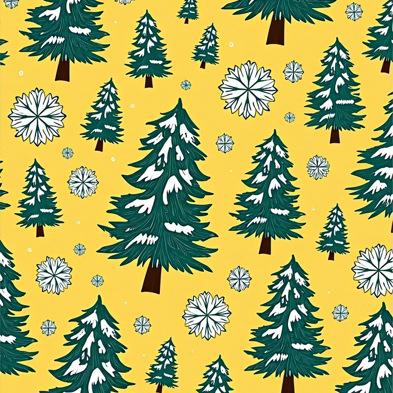 Enchanted Forest Pine Tree Snow Covered Landscape Holiday Floor Covering(Yellow)