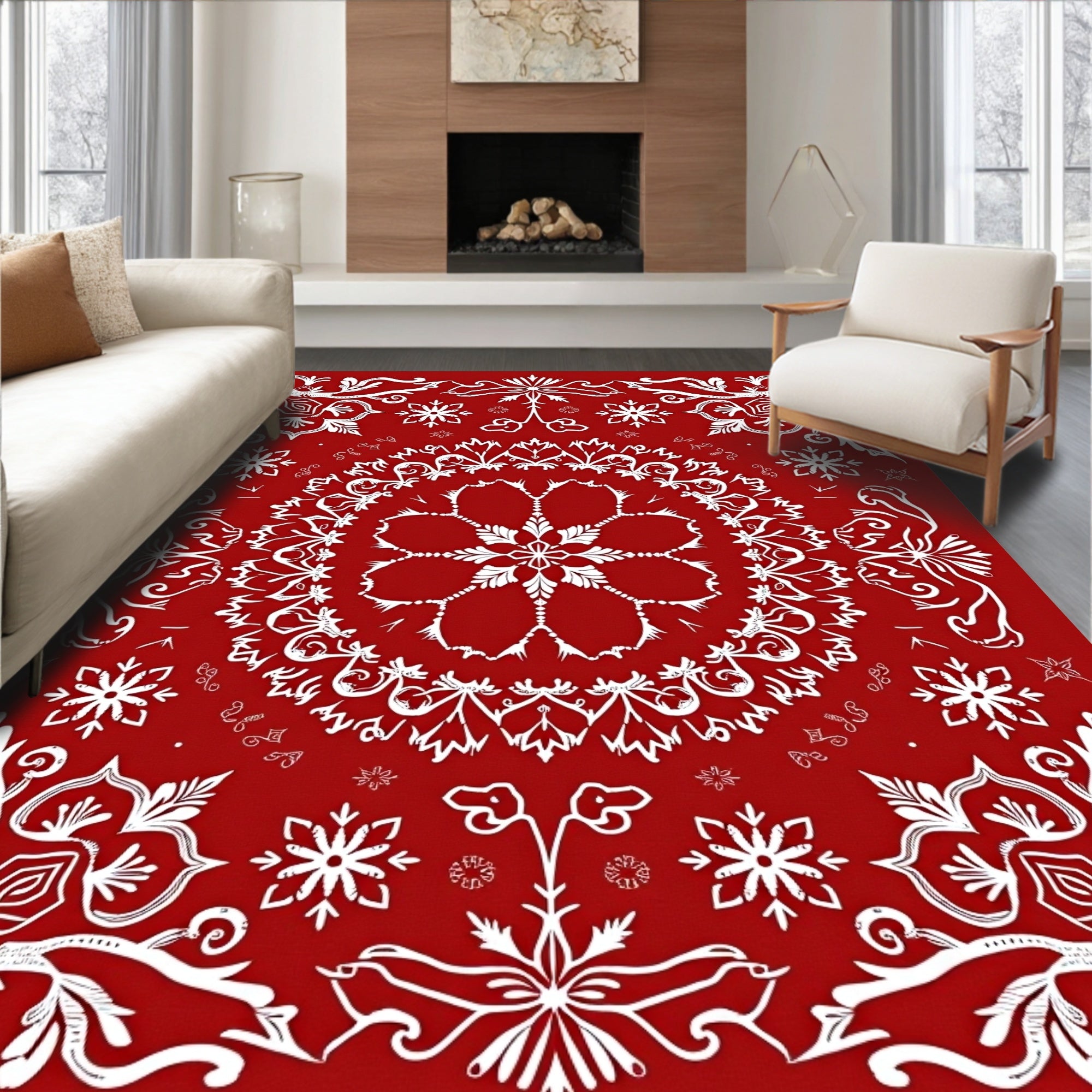 Nordic Snowflake Medallion Festive Holiday Motif Accent(Red)