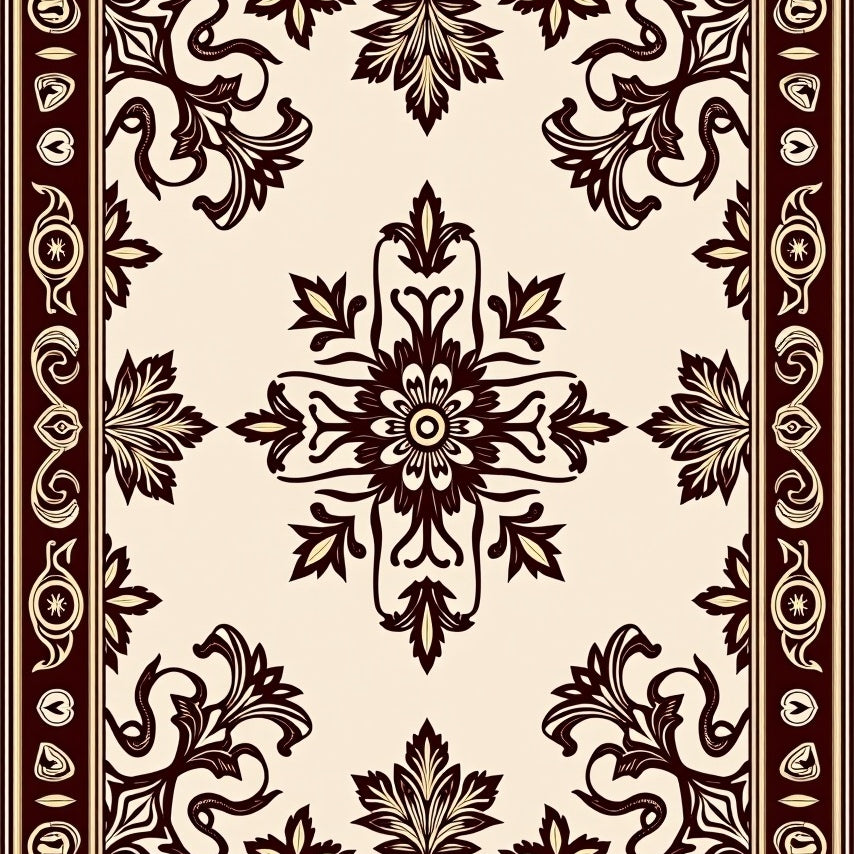 Elegant Interlocking Chevron with Vintage Inspired Motifs(Brown)