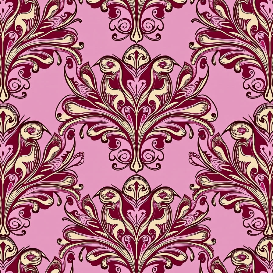 Modern Interlocking Trellis with Abstract Floral Motifs and Fine Detailing(Burgundy)