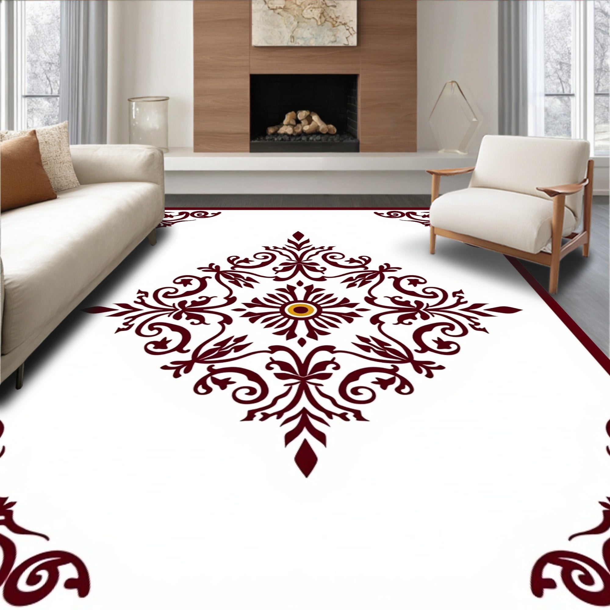 Vintage Luxe Medallion Damask with Ornate Flourishes and Scrollwork(White)