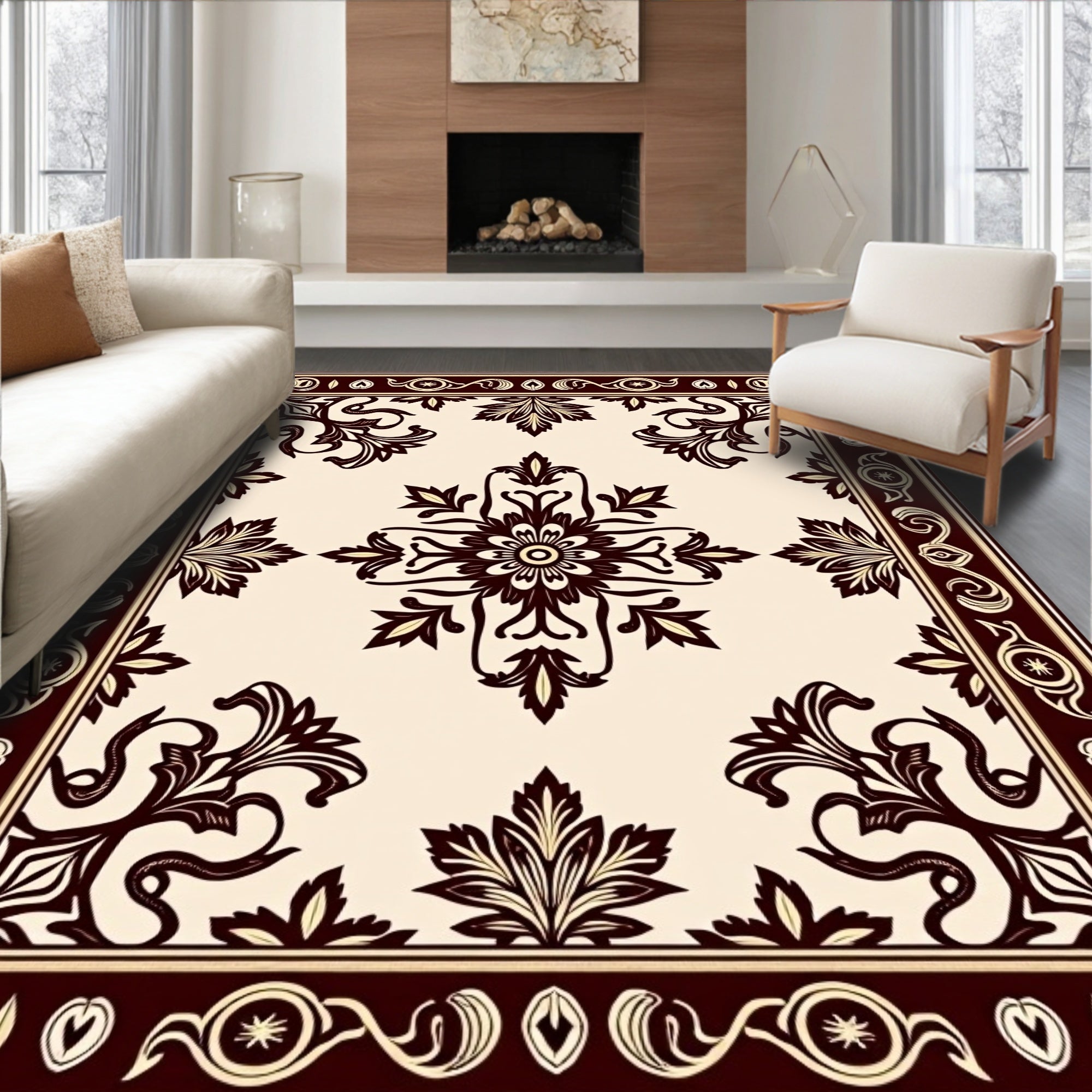 Floral Damask Inspired Layout with Ornamental Swirls(Beige)