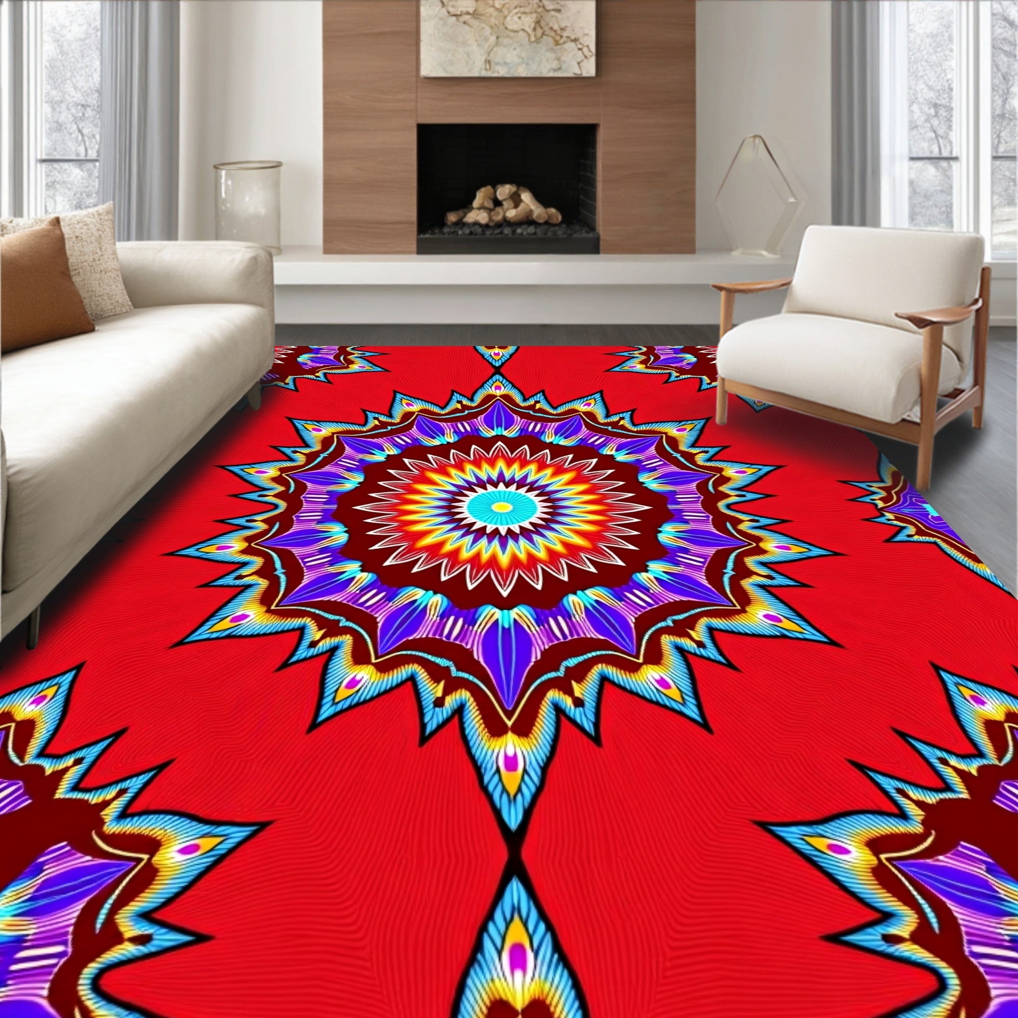 Burst Medallion Ornate Boho Chic Statement Floor Art (Red)