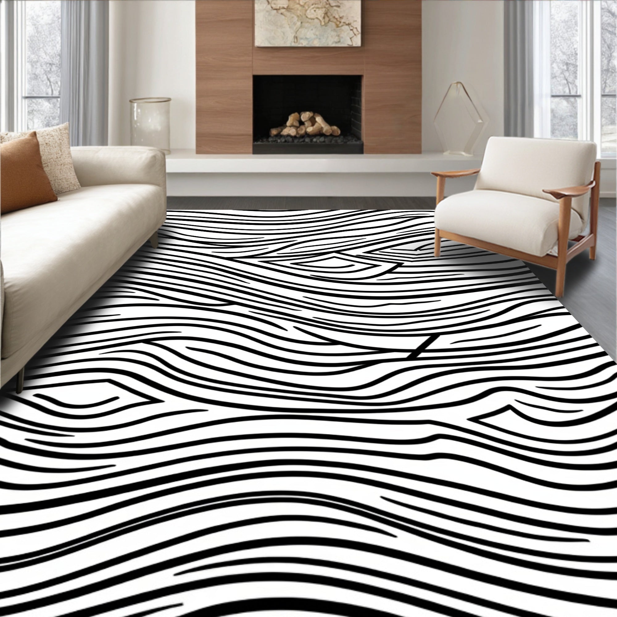 Abstract Chevron Wave Modern Contemporary Decorative Floor Covering (Black)