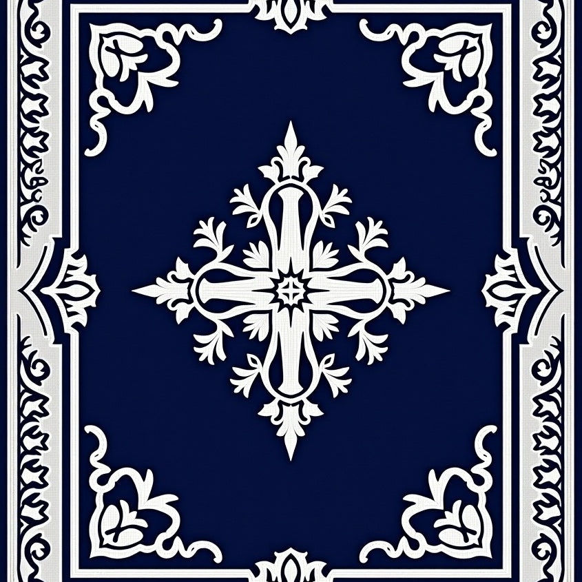 Interlocking Medallion with Subtle Floral Accents(Blue)